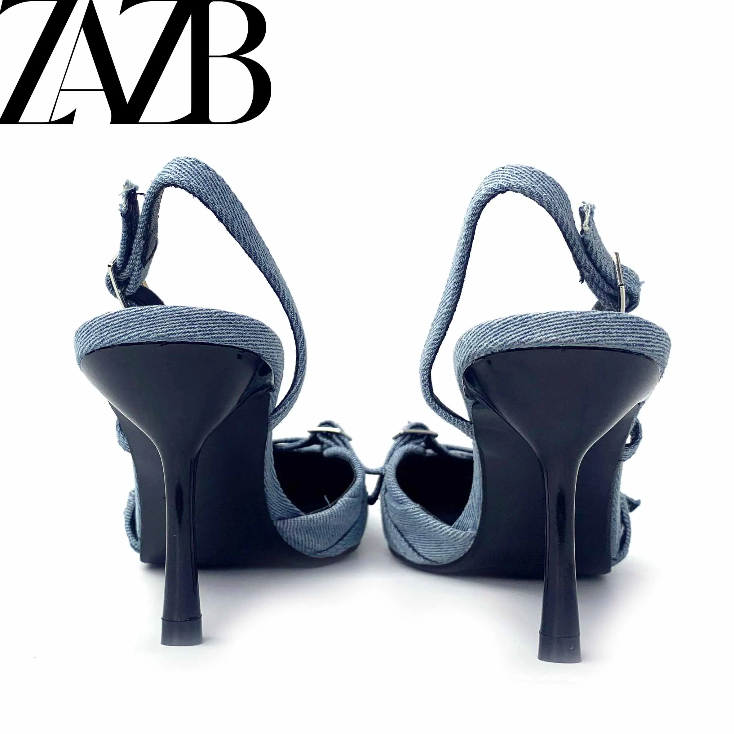 ZAZB Brand Designer Custom for Women Shoes and Sandals Ladies Sandales Denim Fabric Belt Buckle Sandales Chaussures Pour Femmes