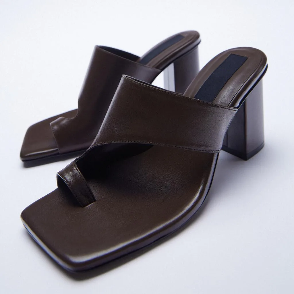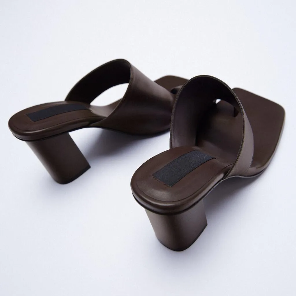 New Arrivals Customized Summer Pinch Foot Women's High Heel slippers Rome Square Head Open Toe Ladies Chunky Heels Sandals