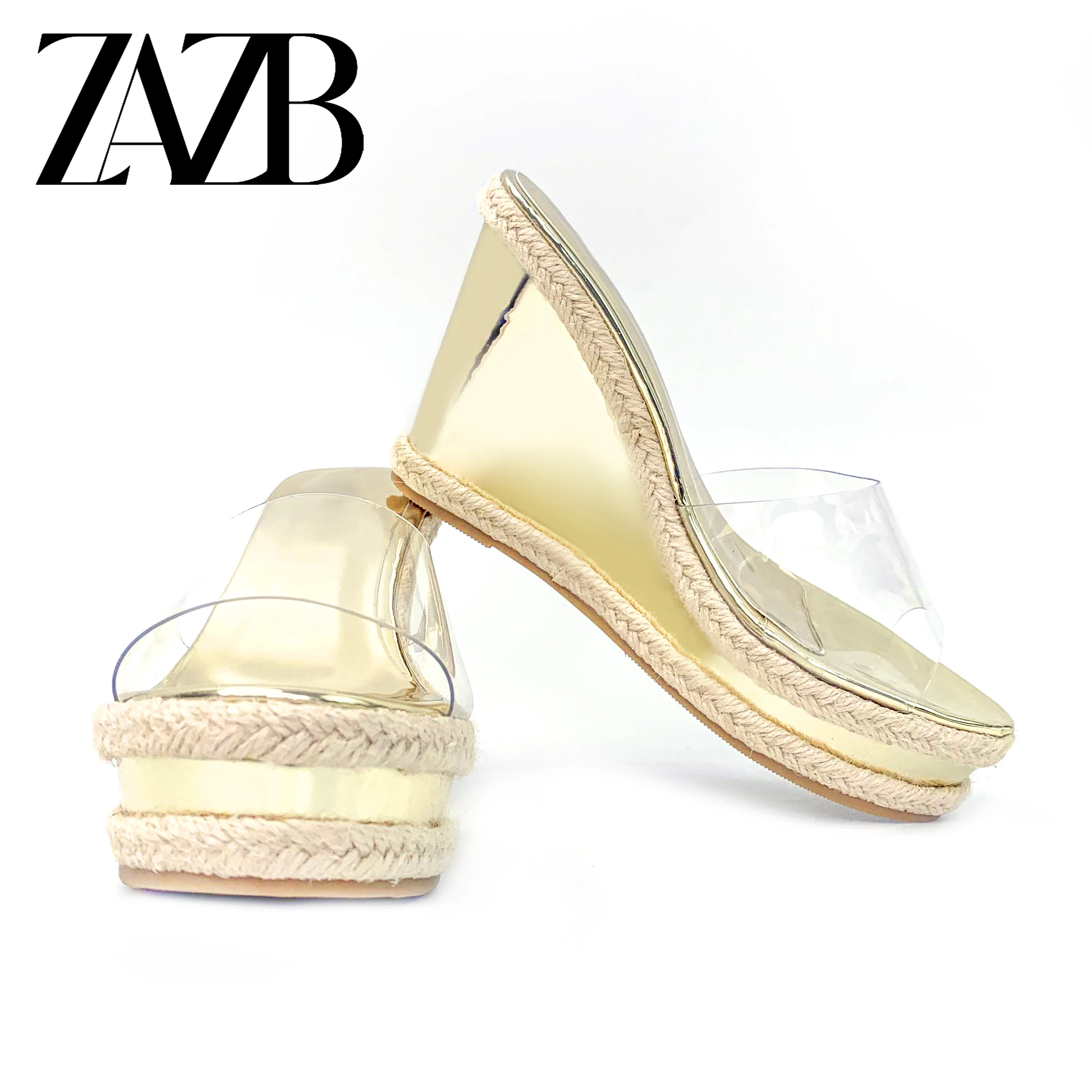 New Arrivals Hot Selling Metal Feeling Women's Wedges Slipper Beach Narrow Strap Sandals Rome Sexy Ladies High Heels