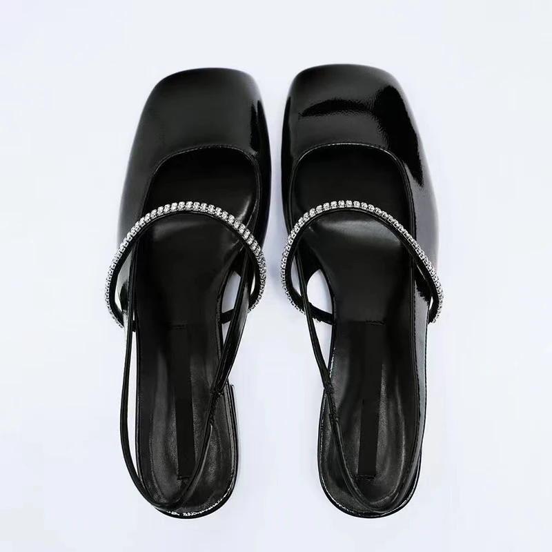 Baotou Houkong Sandals Are Fashionable and Versatile. They Are High Heels with Broken Diamonds