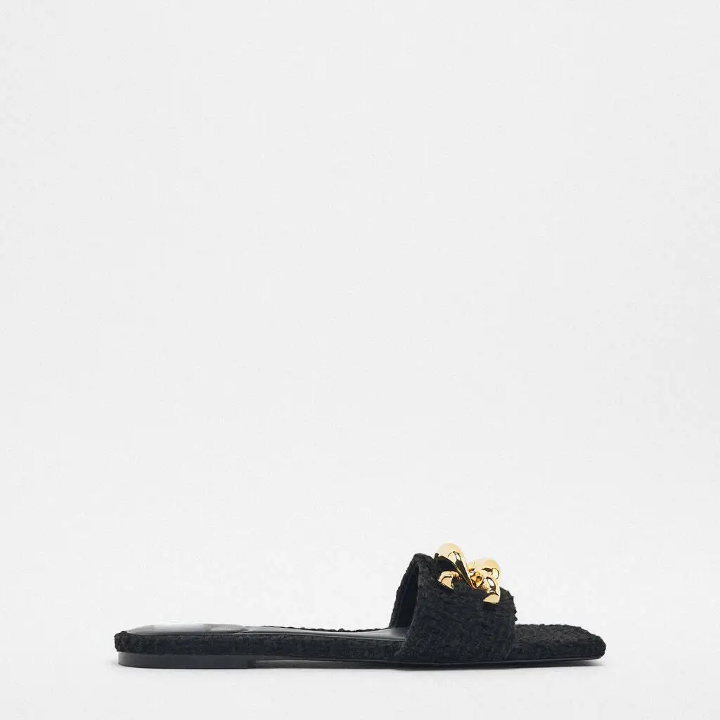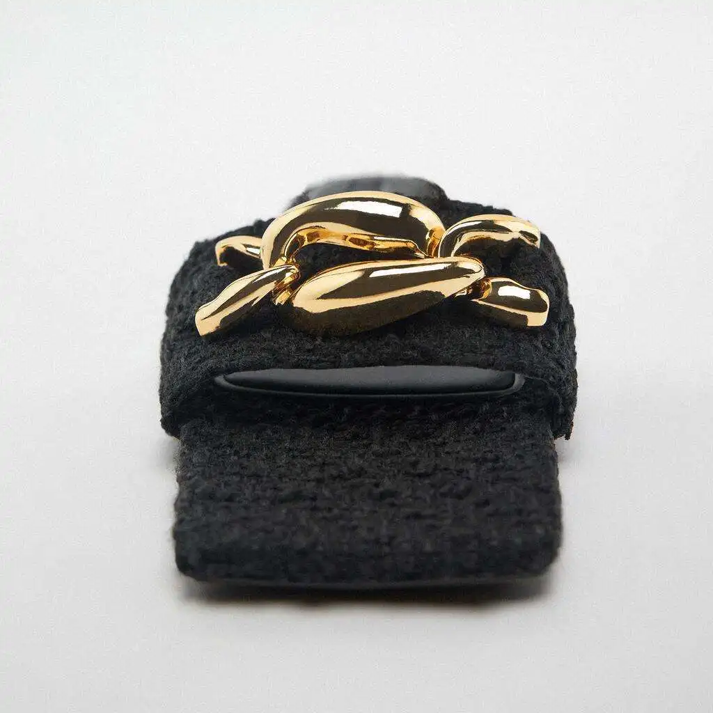 New Design Summer Elegant and Chain Weave Women's Flat slippers Open Toe Leisure Beach Light Pearl Ladies Sandals