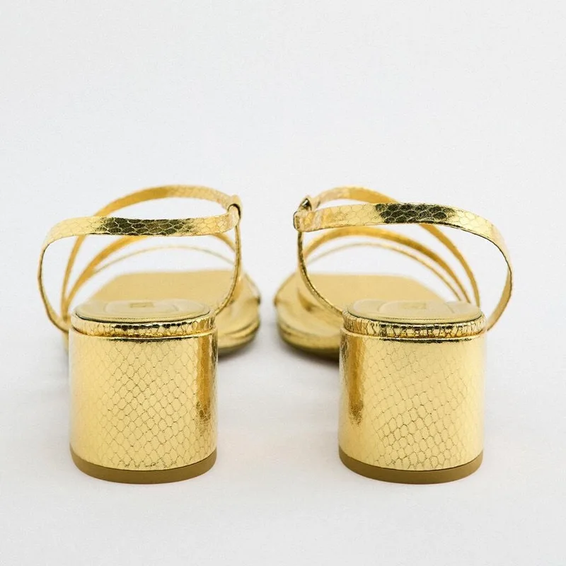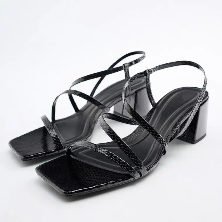 Black and Gold square Head French High Heels Women's New Casual Open Toe Thick Heels Fashion Sandals