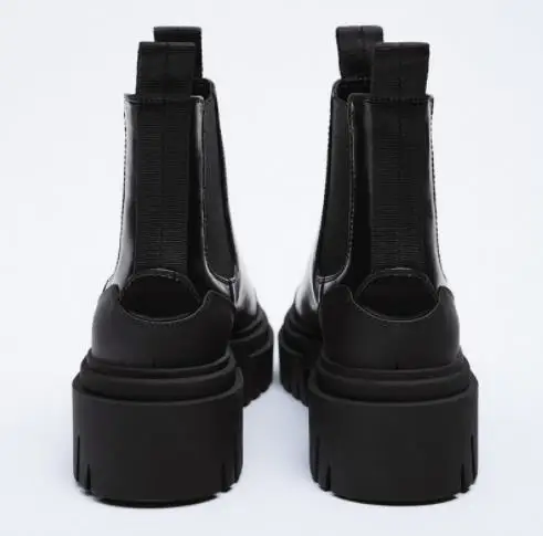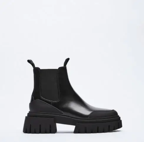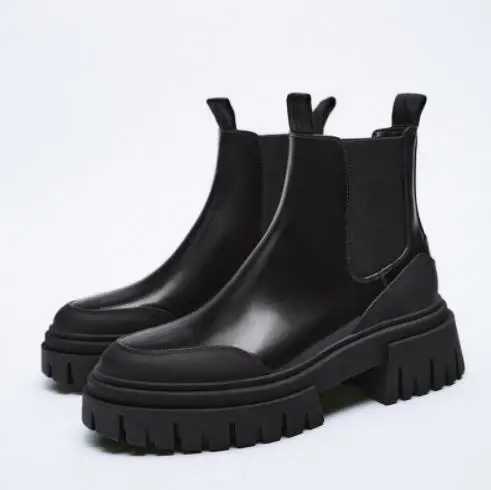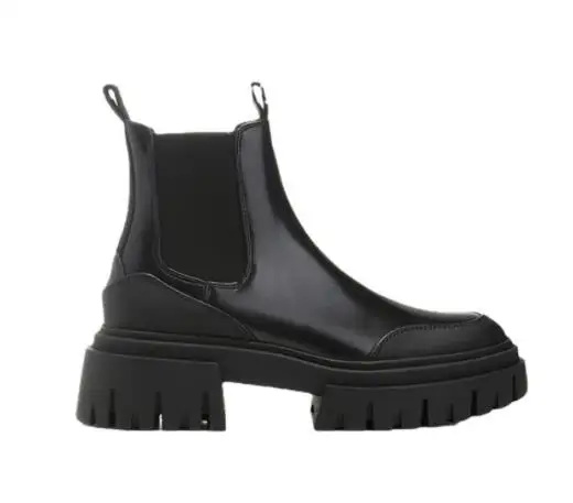 Autumn and Winter Women's Shoes Black Round Head Thick Bottom Dark Gear Shoes Chelsea Boots Thick Heel High Martin Boots