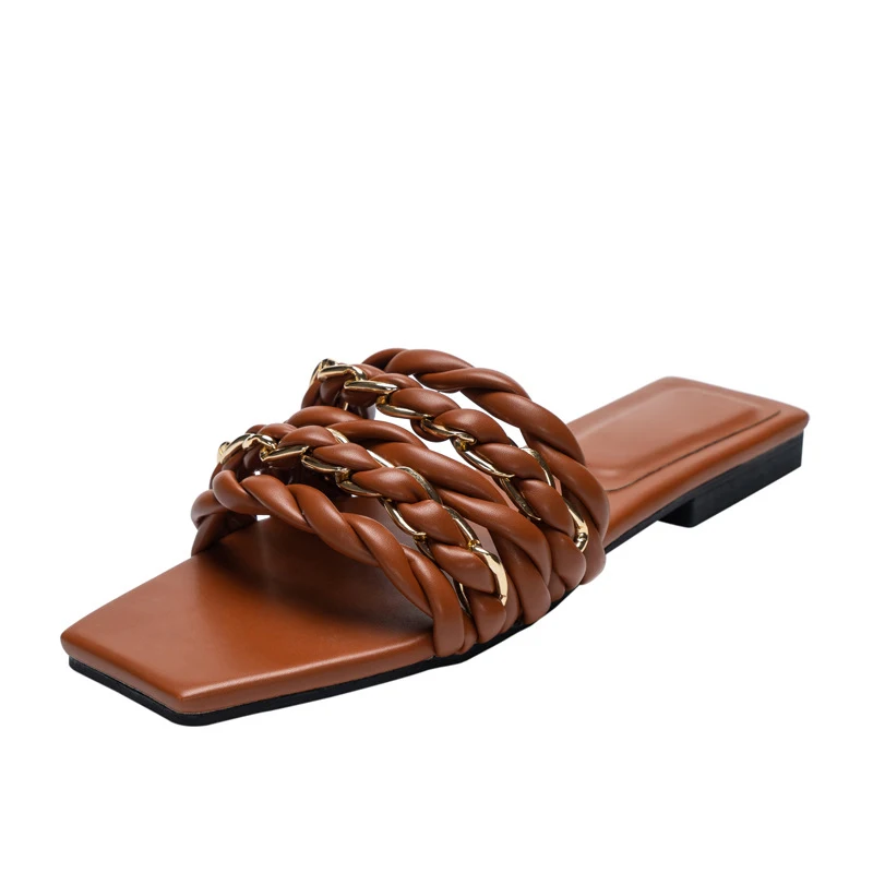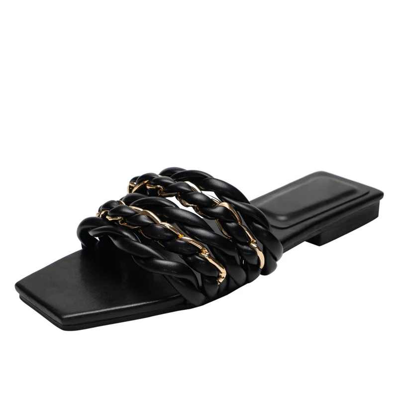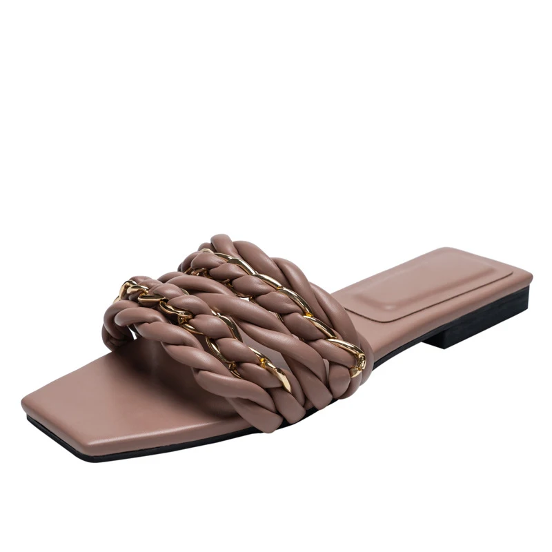 Custom Metal Chain Designer Flat Shoes Sandals for Women and Ladies High Heels Luxury Beach slippers Femmes Fashion