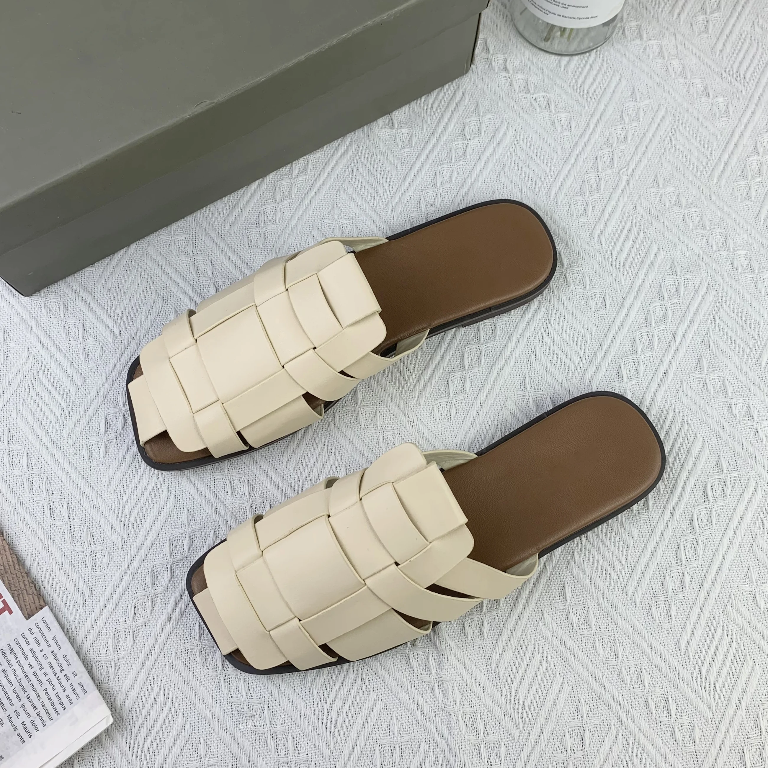 Customized Designer Shoes Woven Leather Baotou slippers Women's and Women's Flat slippers Luxury Women's Fashion