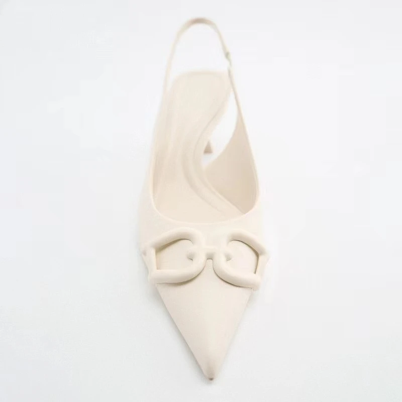 New Women's Shoes in Spring and Summer White Ol Style Fashionable Temperament Thin Heels High Heels Muller Shoes, Pointed E