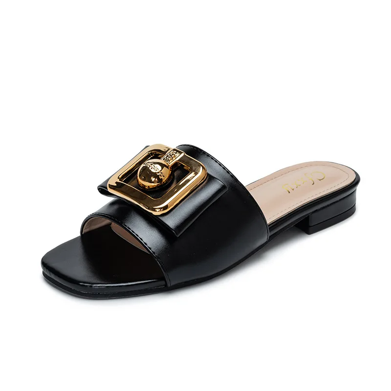 Customized Designer Shoes Metal Button slippers Women's and Women's Flat slippers Luxury Women's Fashion