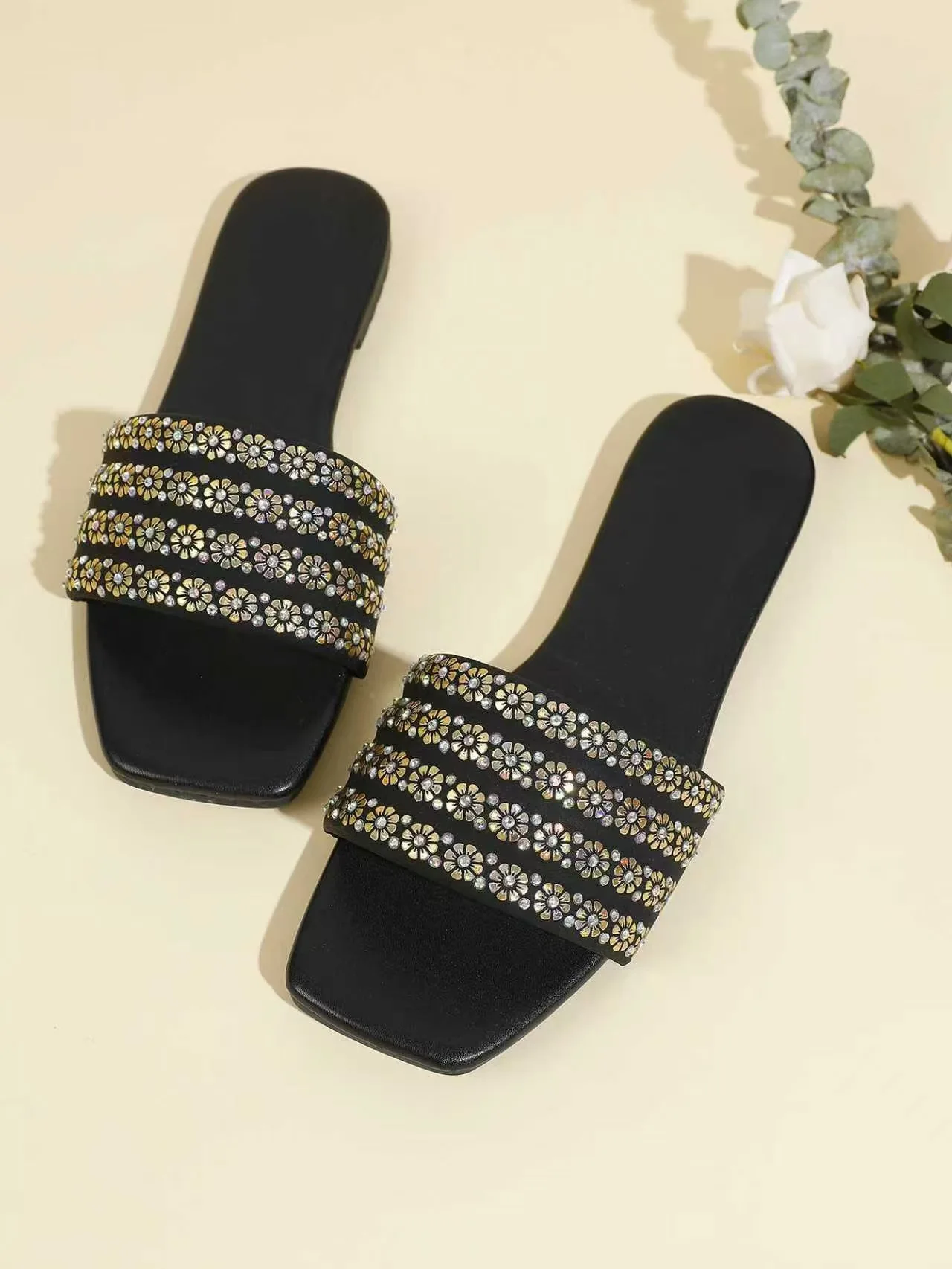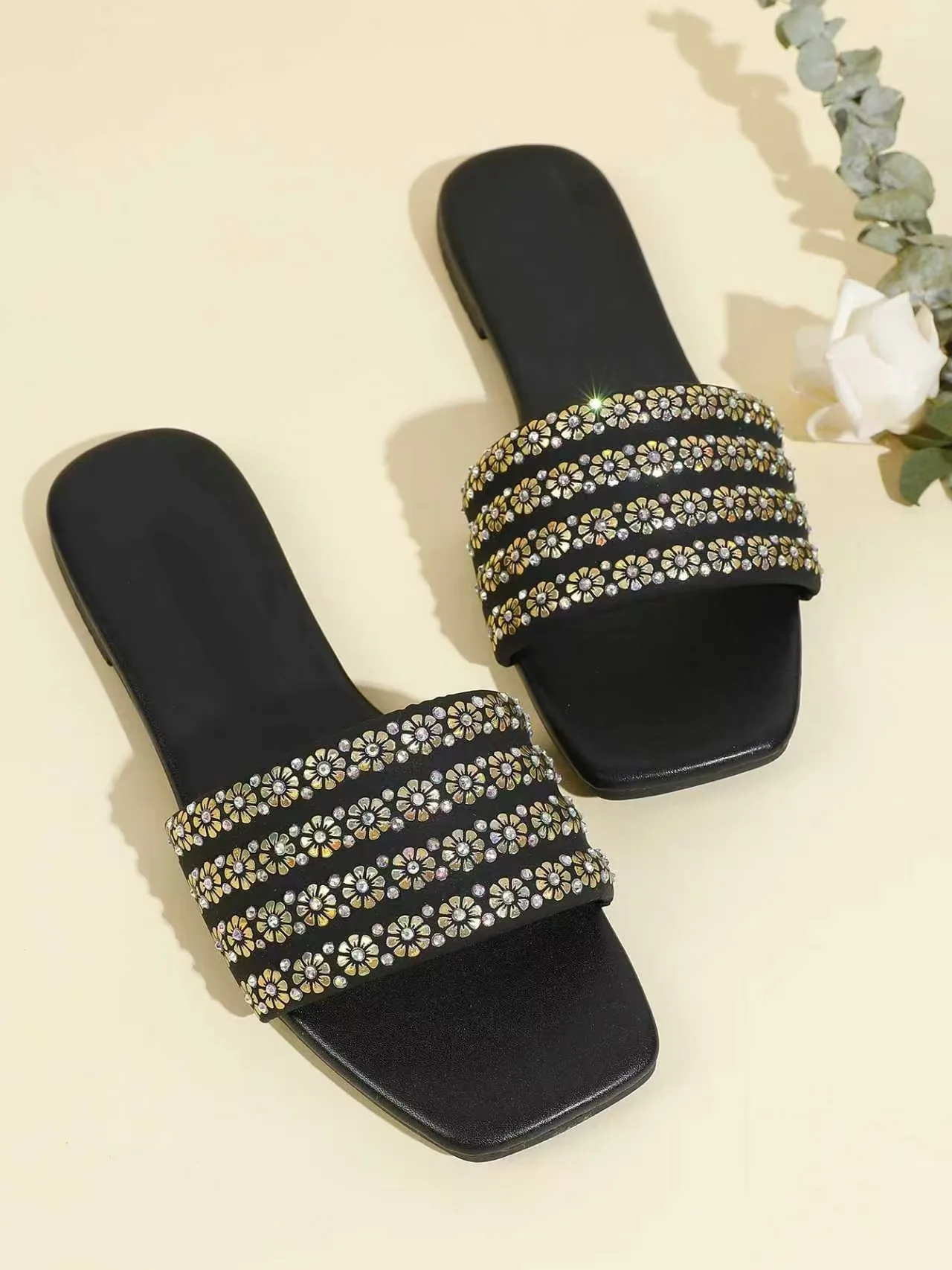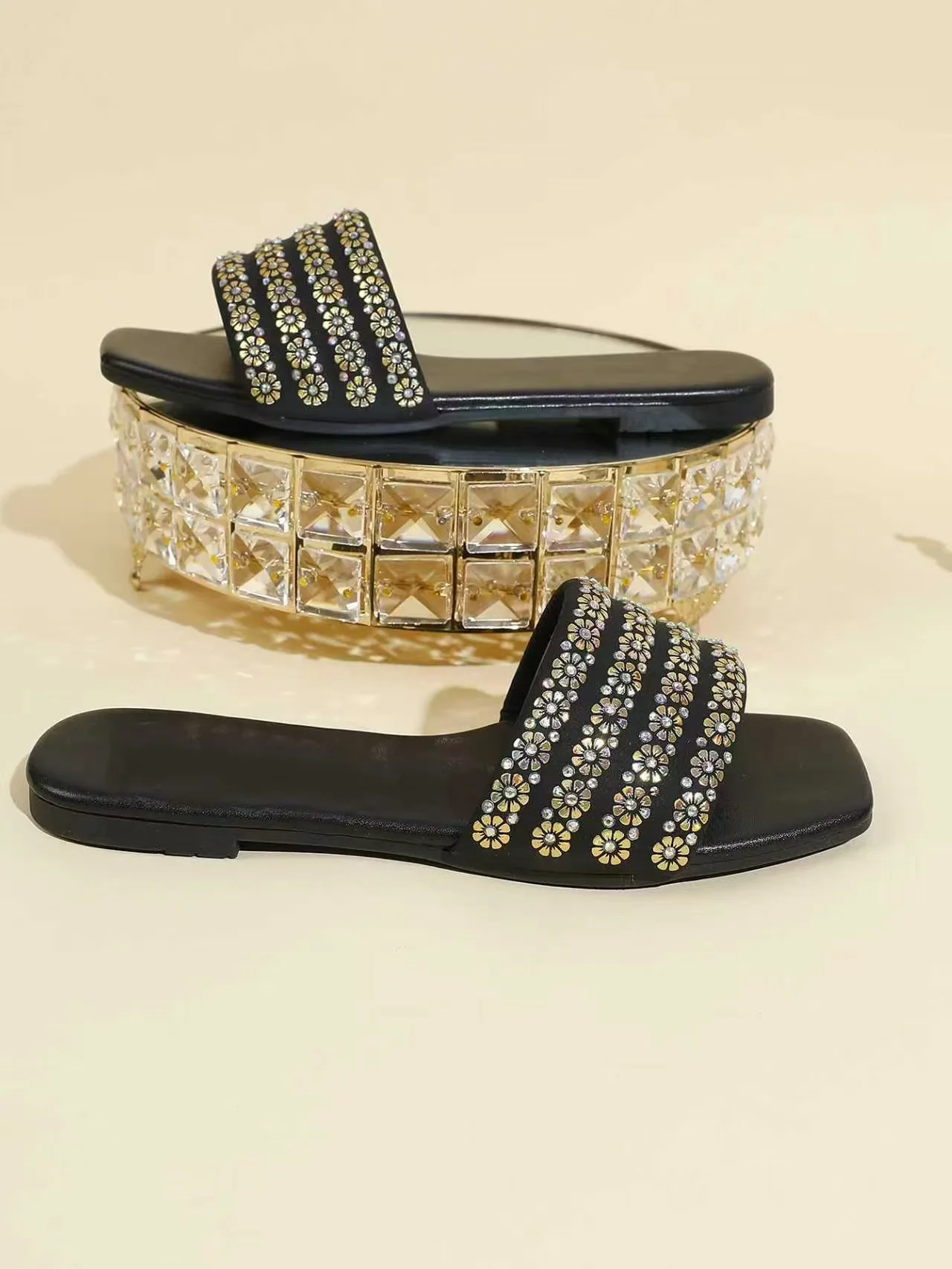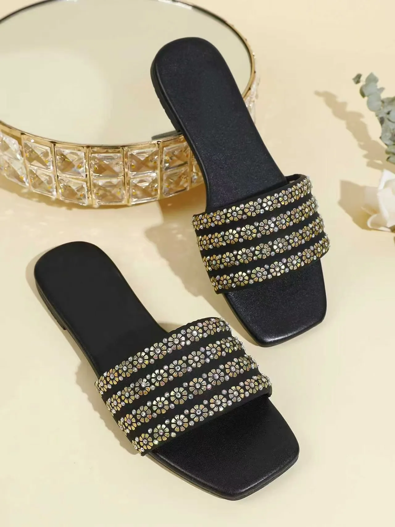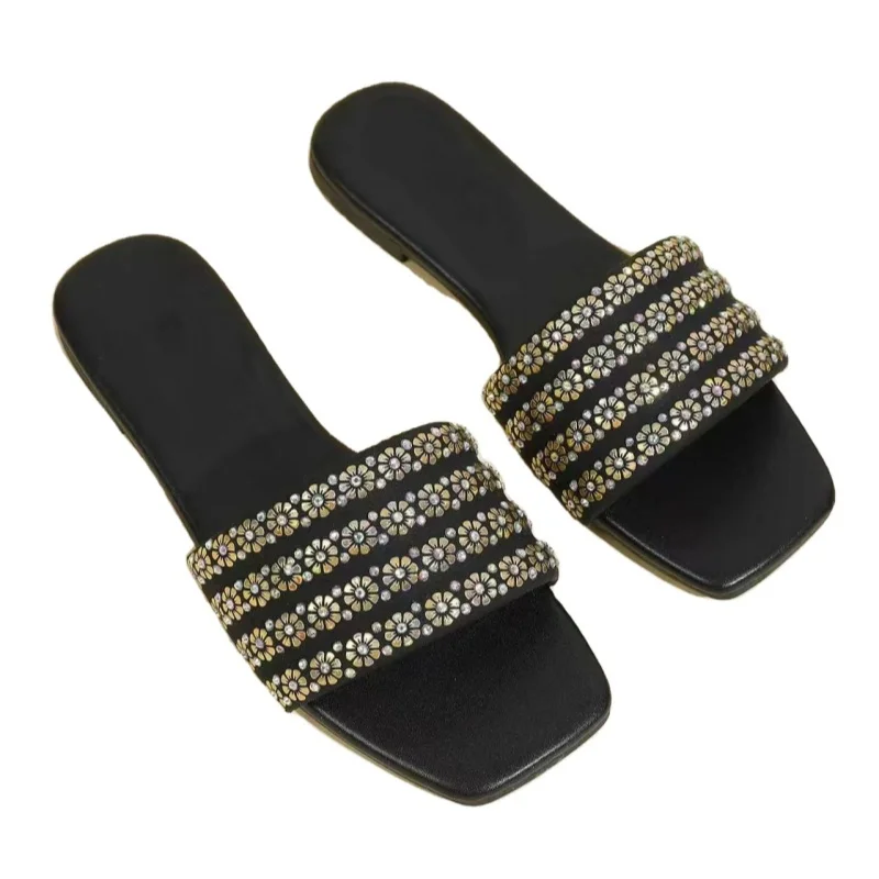 Custom Tassel square Metal Chain Ladies Women Flat Comfortable Loafers Leather Shoes Ladies Fashion Beach slippers