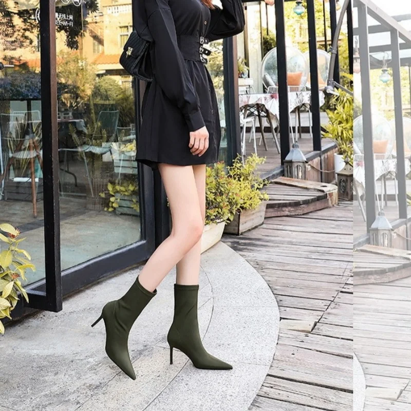 New Arrival Winter Autumn Stiletto Boot Socks Wome Pointed Toe Ladies Boots High Heels Booties for Women Formal Parliament Shoes