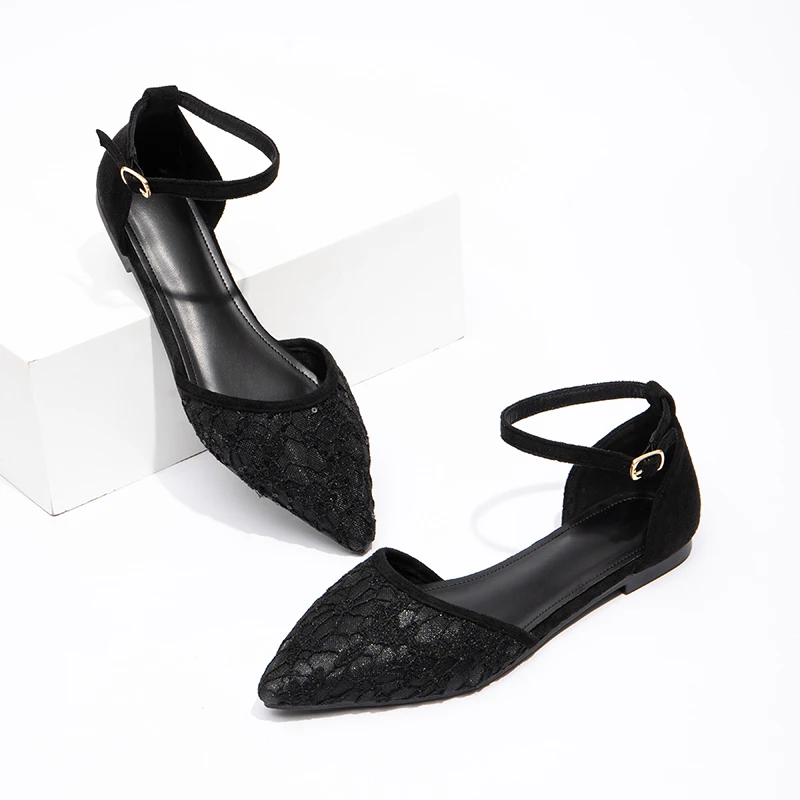 Low Price Wholesale Women's Flat Shoes Black Elegant Toe Flat Shoes Temperament Pointed Sexy Sandals