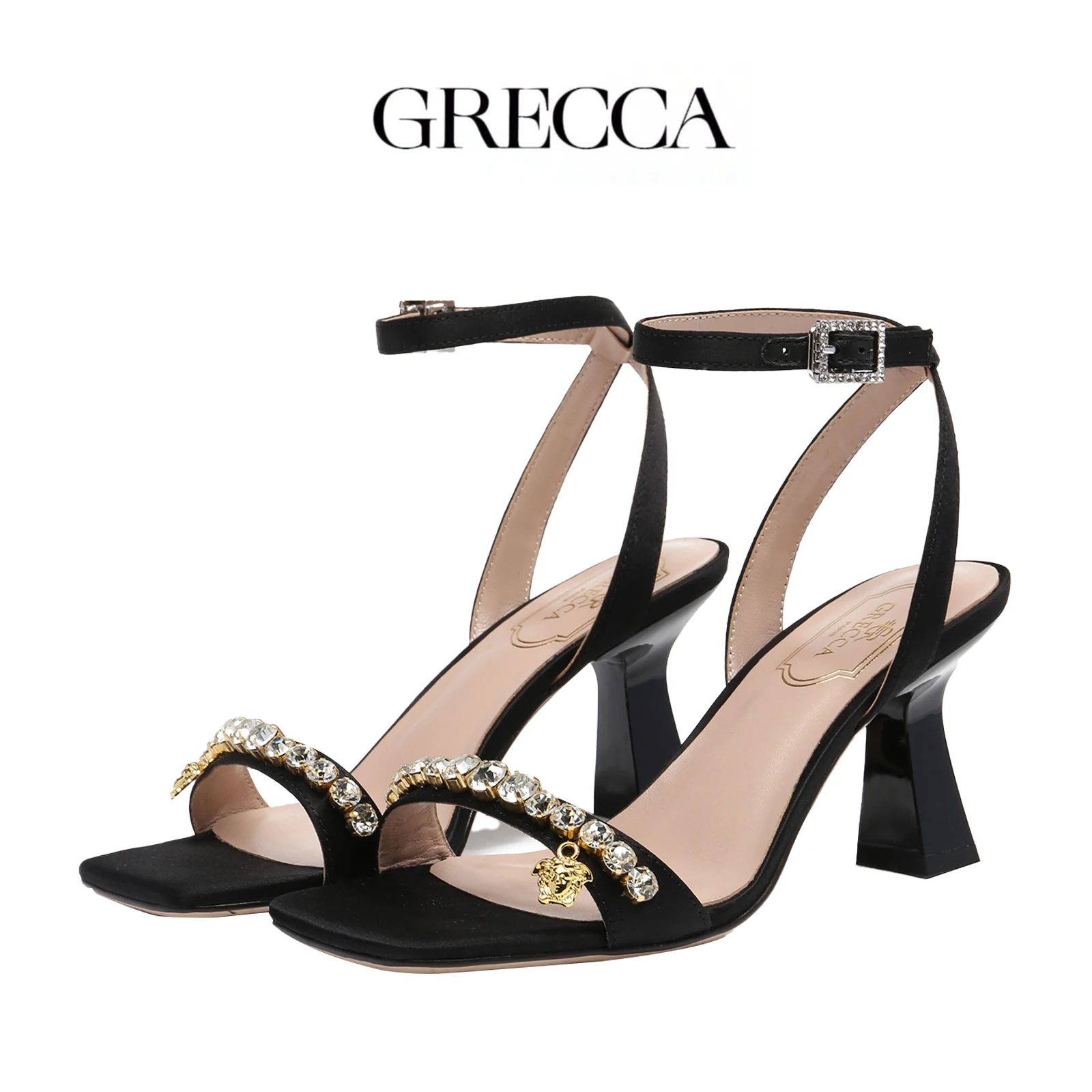 2026 New Crystal-Strap Women's High Heel Sandals, Square Toe Design, Fashionable Party Style, Sandals, Women's Summer Sandals