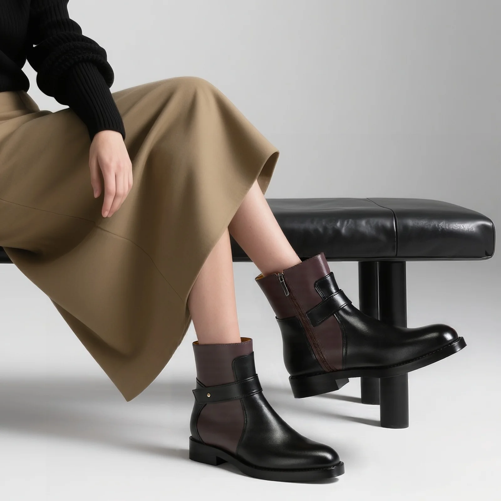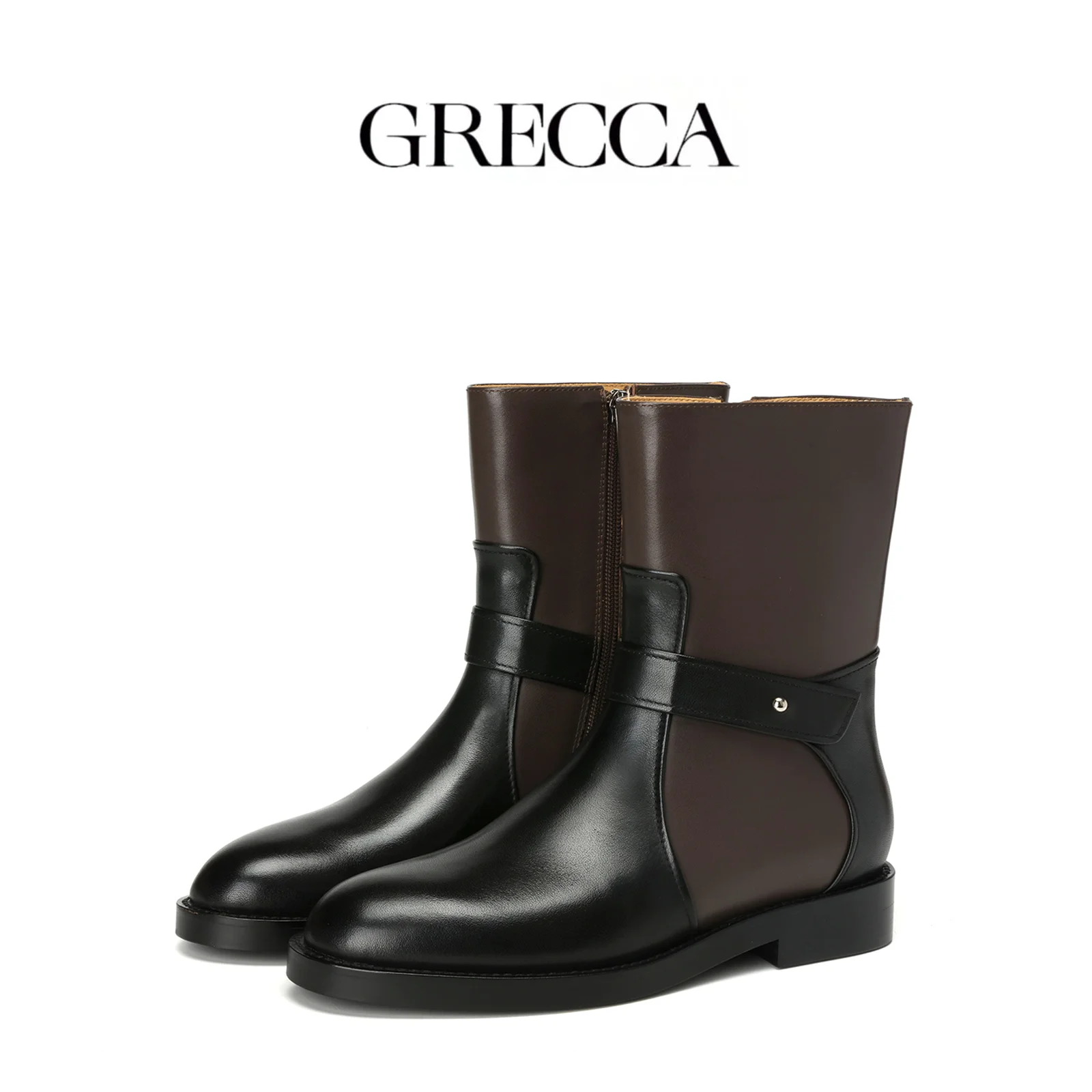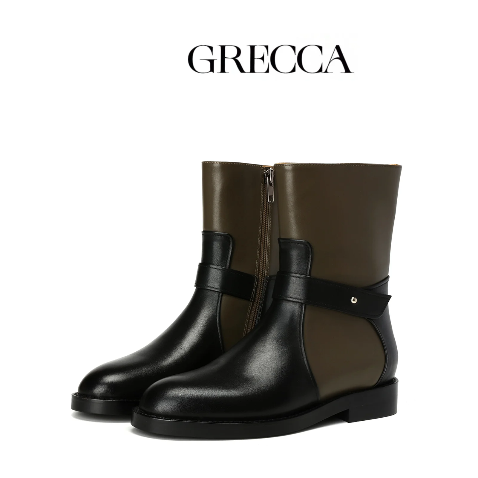 New Fashion High-heeled Short Ankle Boots for Women Chunky Heel Round Toe Genuine Leather Upper Warming Autumn/Winter Style