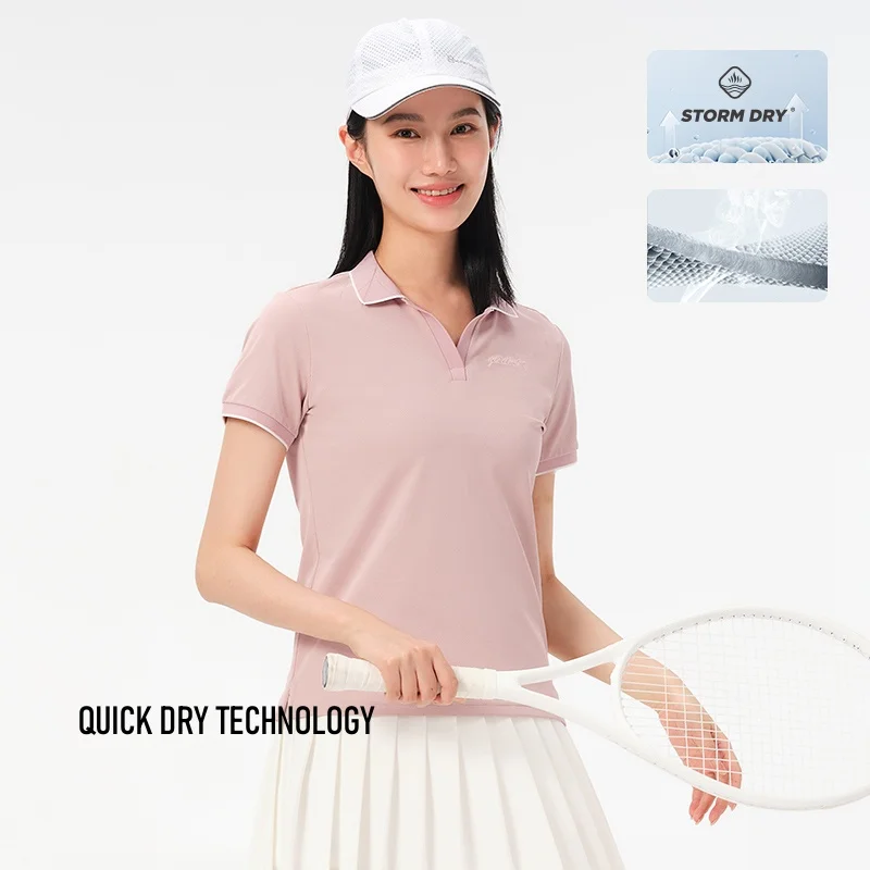 2026 New Mountainner Hiking Quick Drying Polo Women's High Elastic Polygiene Antibacterial Breathable Short Sleeve T-shirts