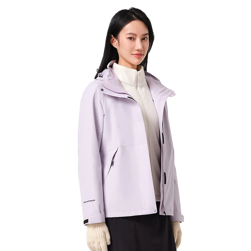 2026 New Women's Fashion Outdoor Waterproof Windbreaker Hooded Rain Jacket Warm Waterproof Hardshell Jaket With Fleece Liner