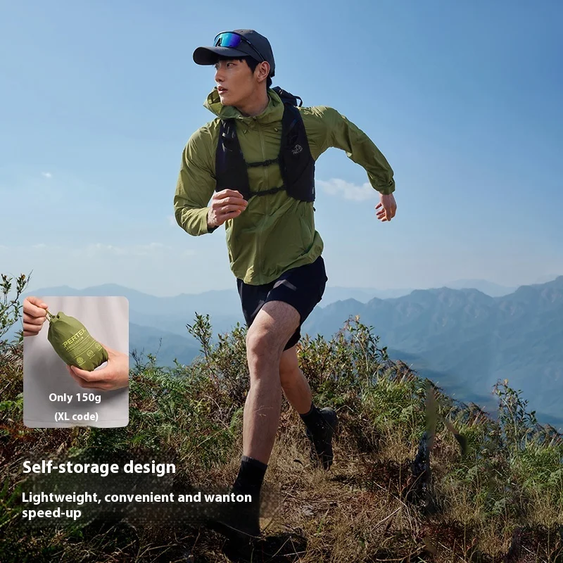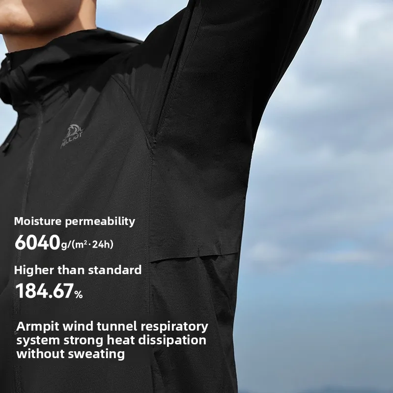 Pelliot Outdoor Men's Hooded Jacket Professional Trail Running Breathable Casual Top with Stand Collar Zipper Closure for Summer