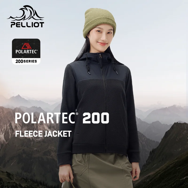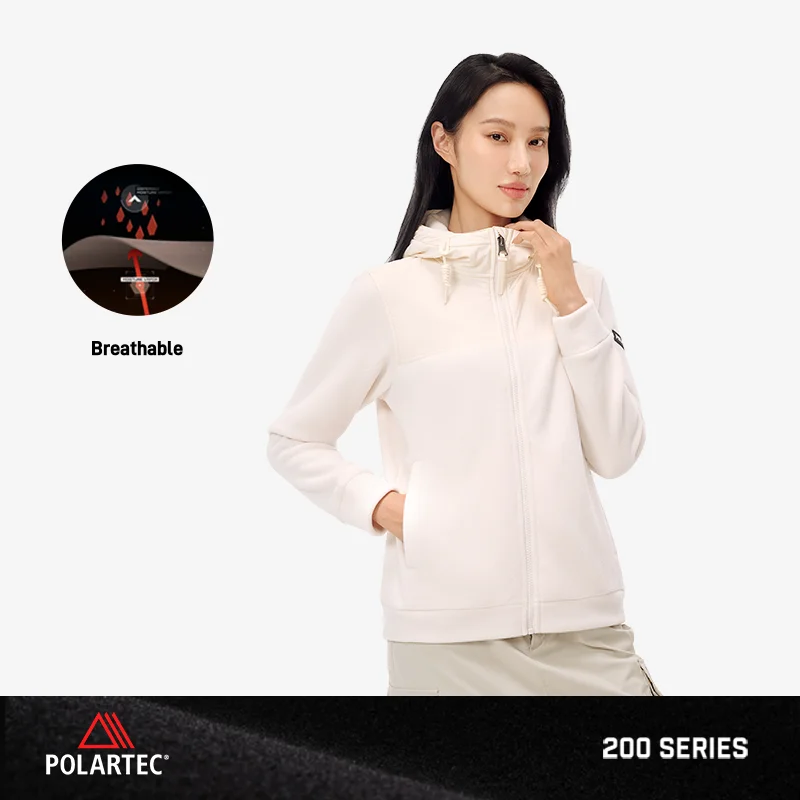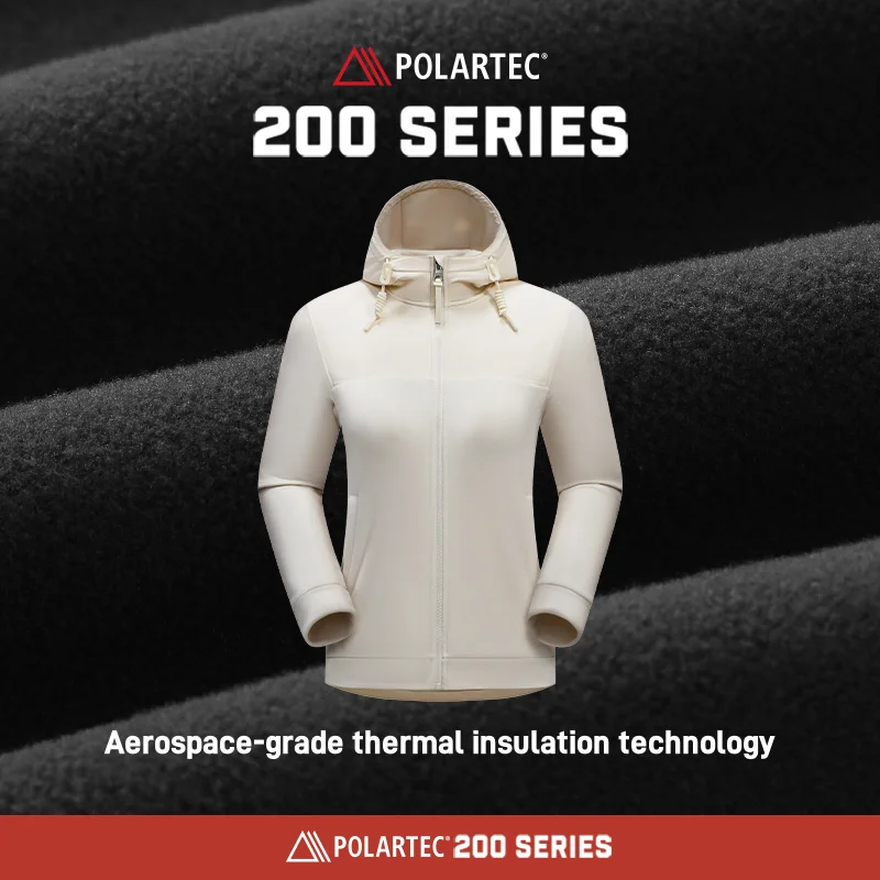 Women's Outdoor Winter Coat Polartec 200 Fleece Windproof Hood Warm Cardigan for Mountaineering and Hiking