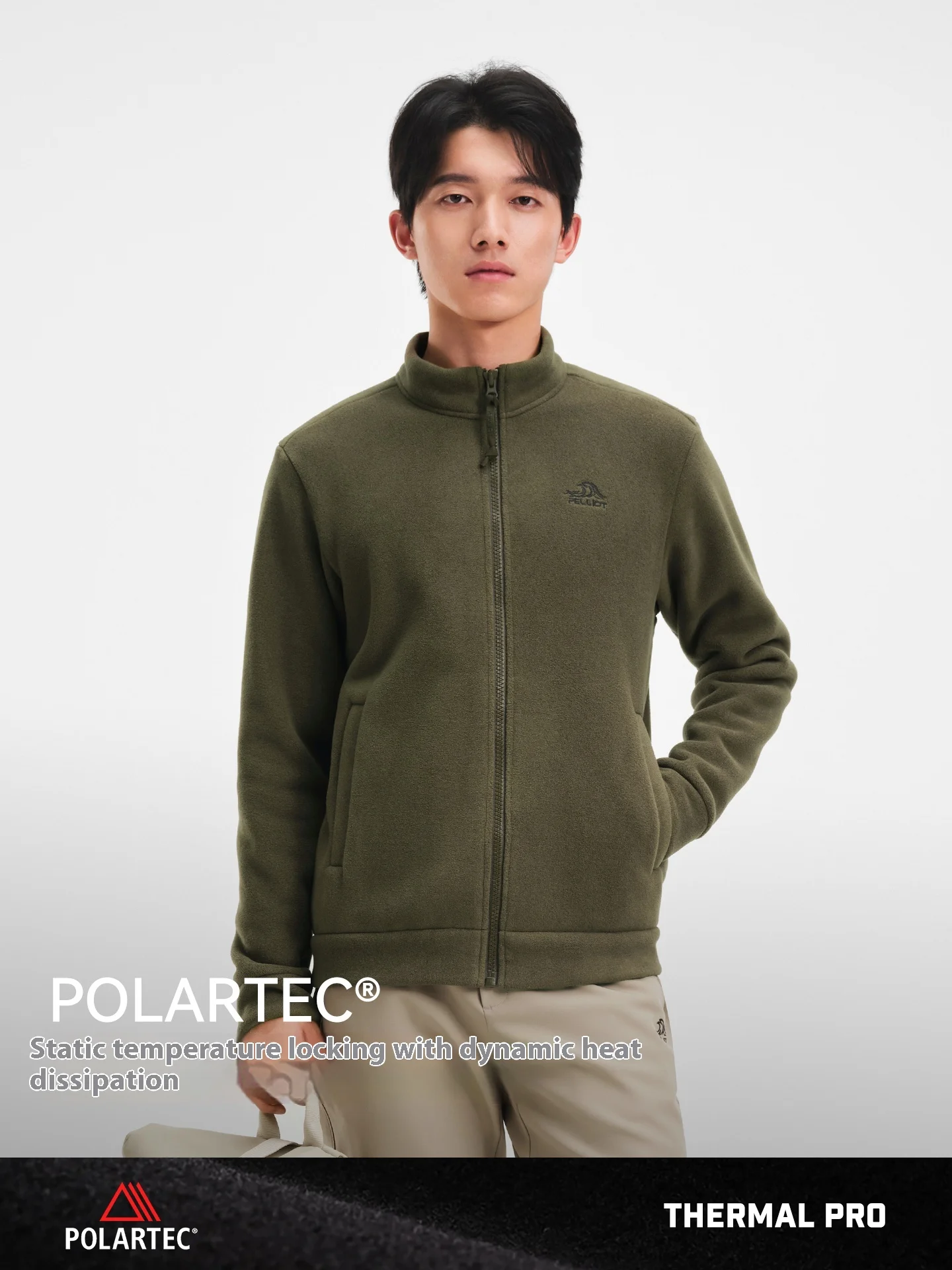 Pelliot Men's Outdoor Polartec Fleece Jacket New Lightweight Warm Sports Stand Windproof Casual Clothes for Winter Plus Size