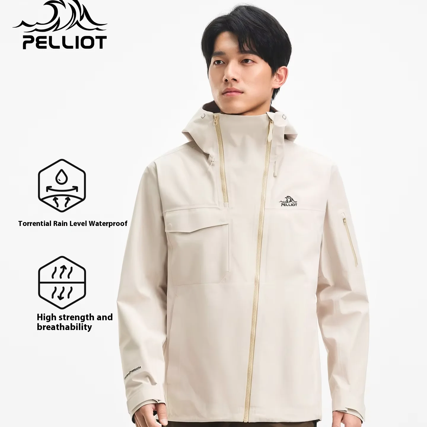 Pelliot 2026 New Outdoor 3L Hard Shell Coat for Men Windproof Waterproof Single Layer for Autumn Hiking Mountaineering