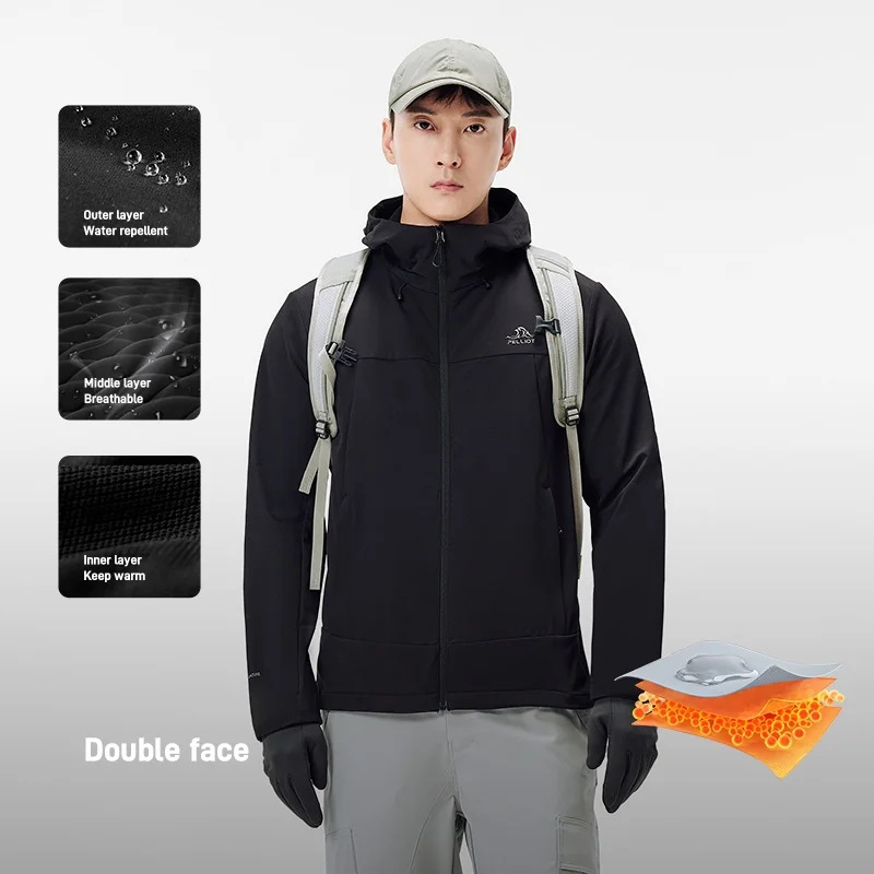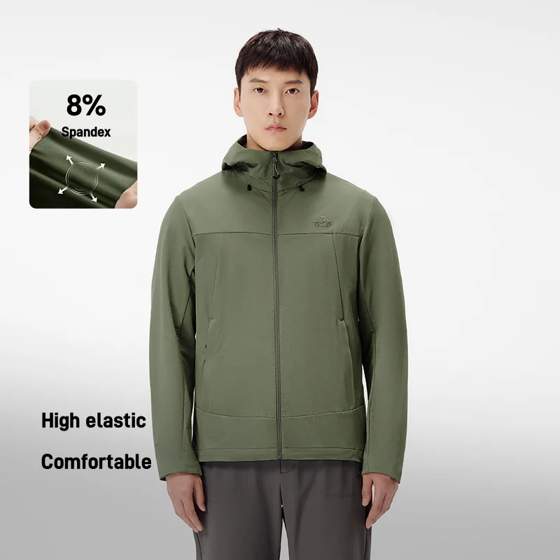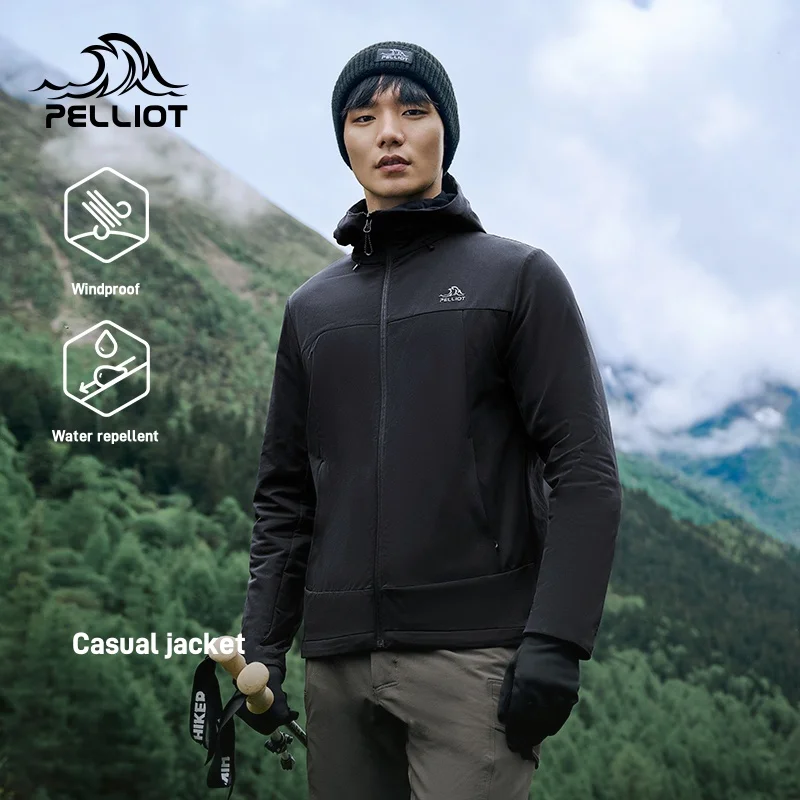 Men's 24 New Slim Coat With Hood Pelliot Outdoor High-Elastic Waterrepellent Breathable Zipper Closure Long Sleeve Casual Jacket
