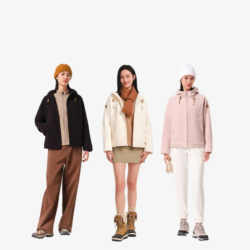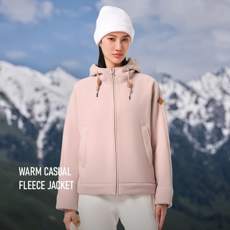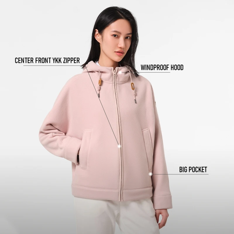 Pelliot 2026 A/W Outdoor Thick Warm Hooded Fleece Jackets Polar Fleece for Women Short 100% Polyester Embroidery Zipper Hoodie
