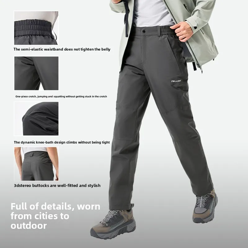 Pelliot Men's Classic Windproof Lightweight Waterproof Sports Trousers Mid Waist Winter Hiking Pants Waterproof Pants