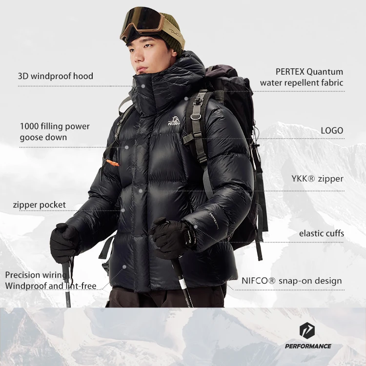 PERFORMANCE PELLIOT Winter Warm Outdoor Windproof 1000 Filling Power White Goose Down Puffer Jacket Ultralight Camping Down Coat