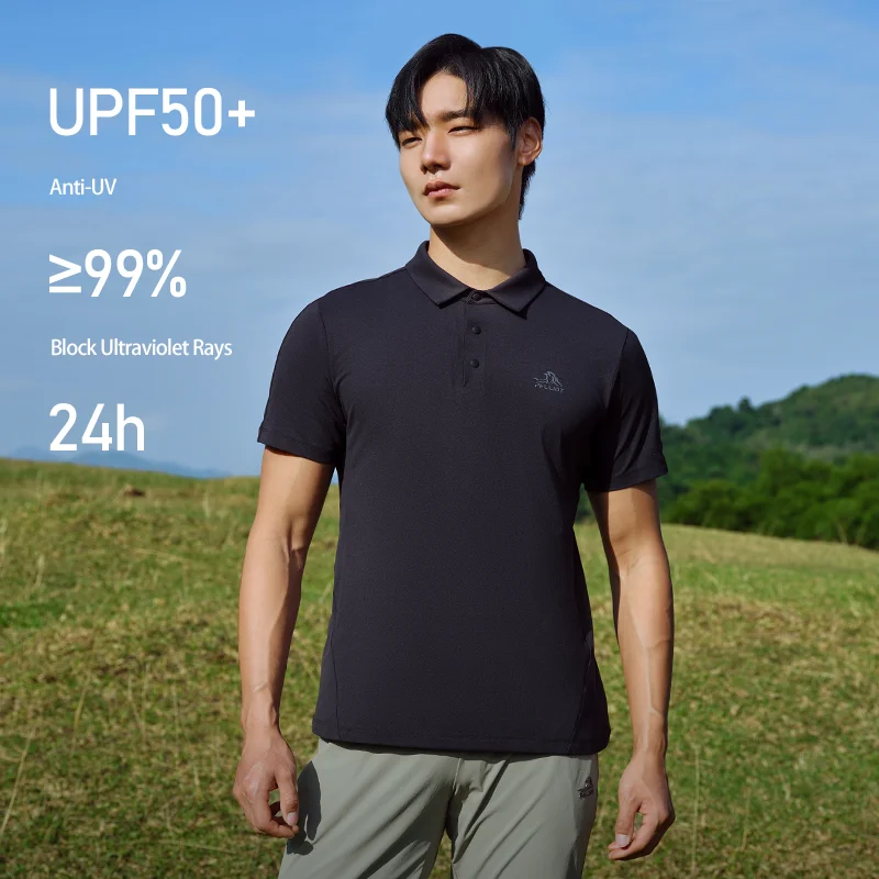 PELLIOT Outdoor Hiking Men's Breathable Quick Dry Antimicrobial High Elastic Lightweight UPF 50+ Sunproof Polo T-shirt