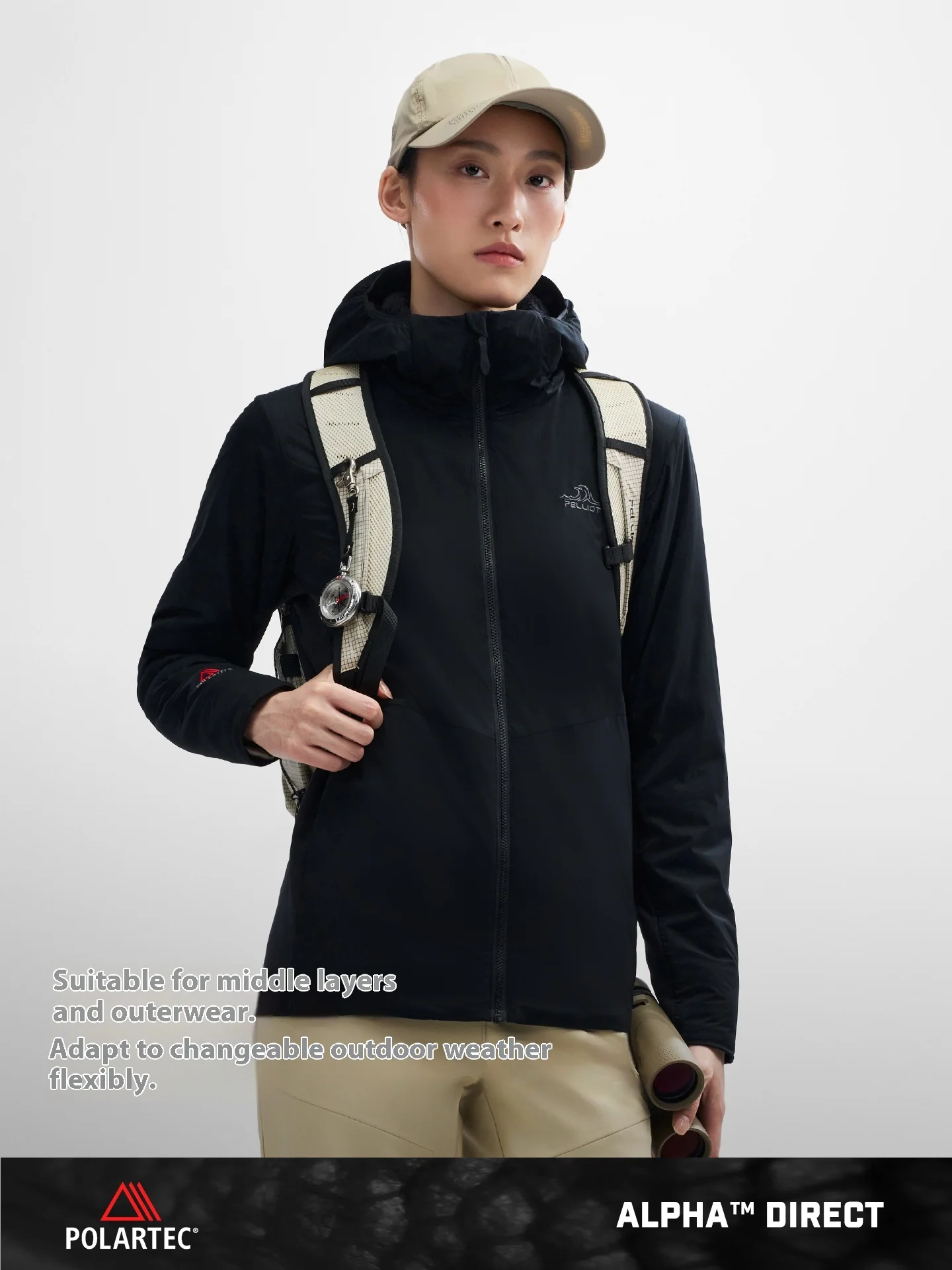 Pelliot Polartec Autumn Stand Zipper Woven Jacket for Women New Outdoor Warm Windproof Breathable Sports Coat