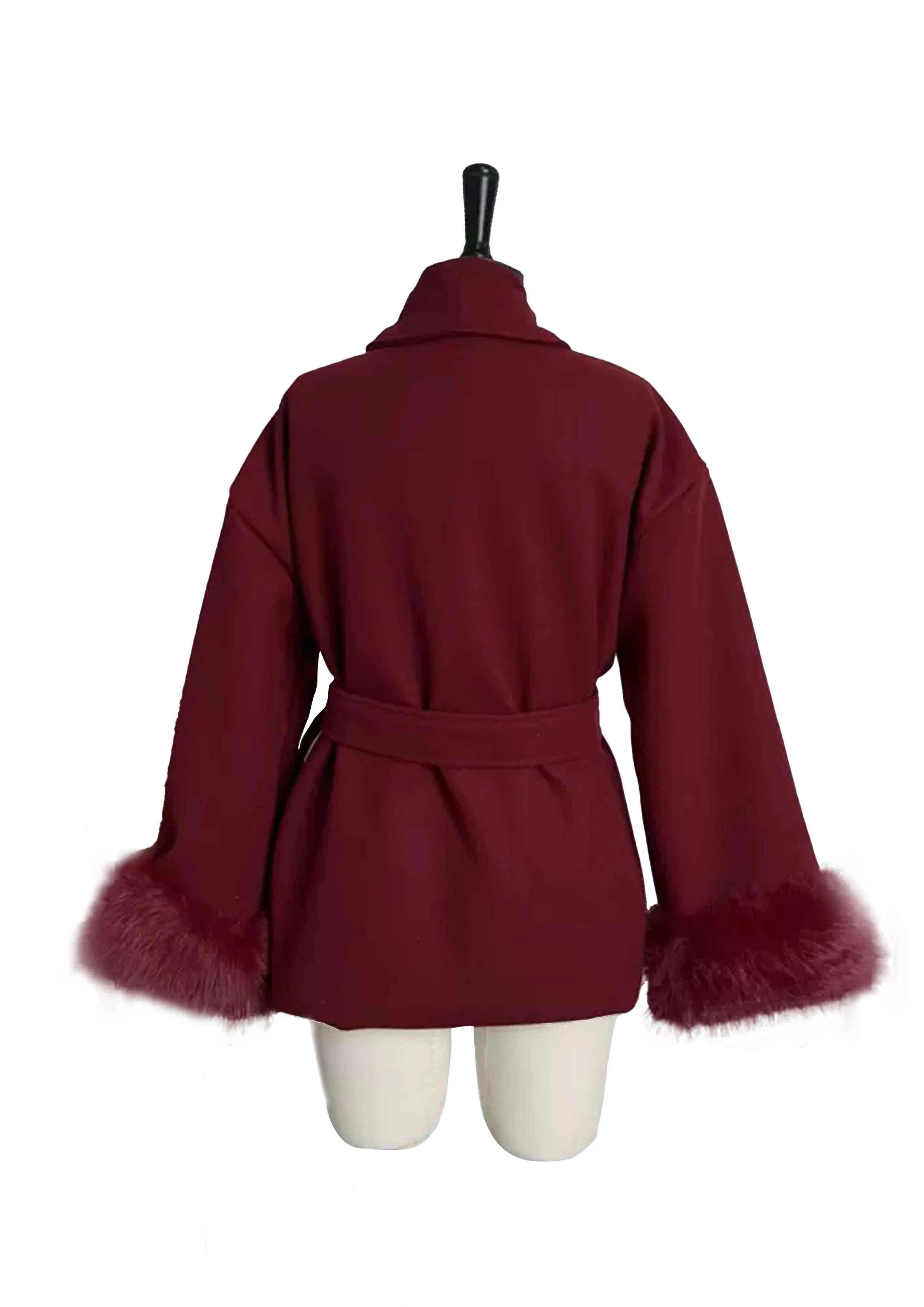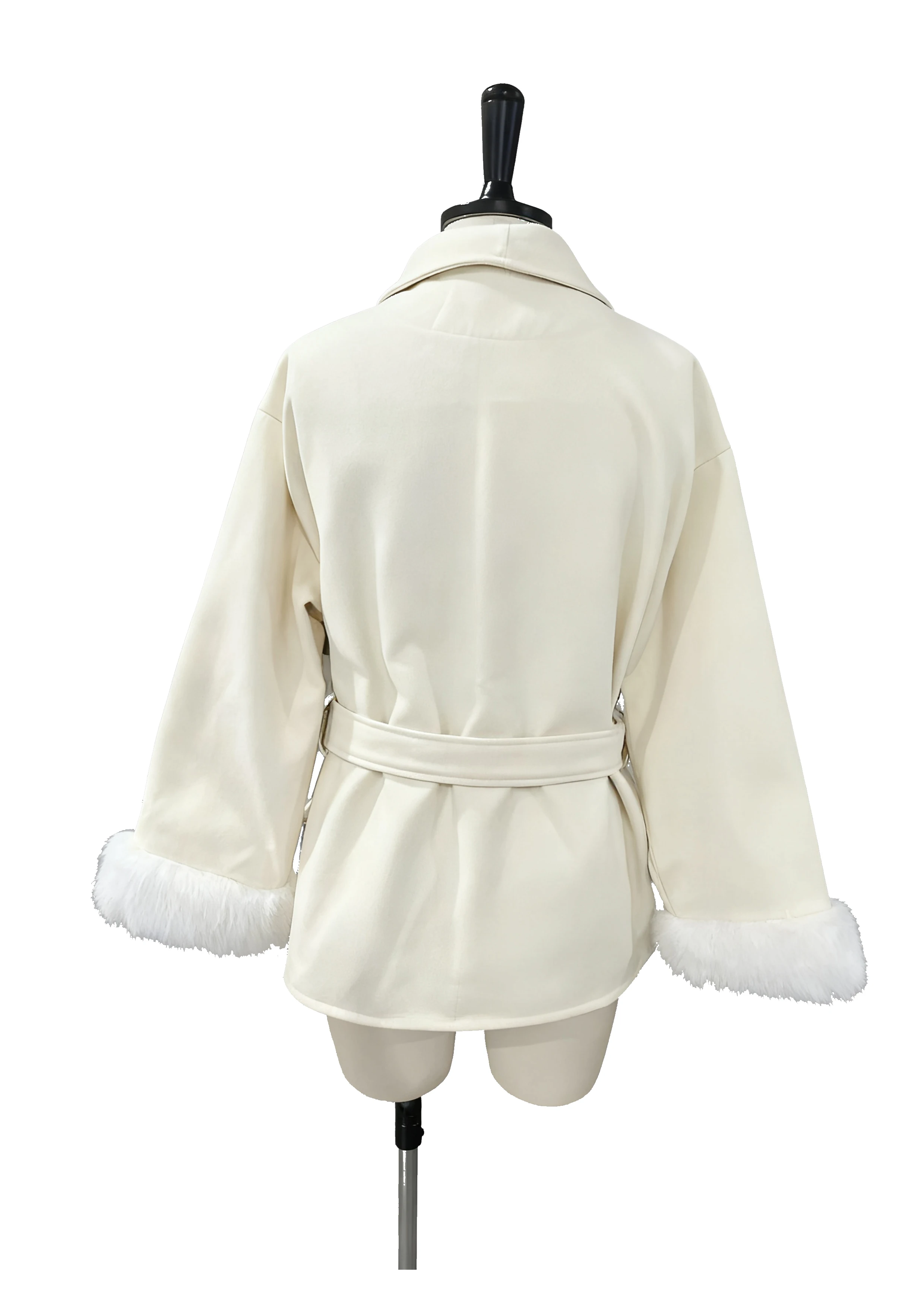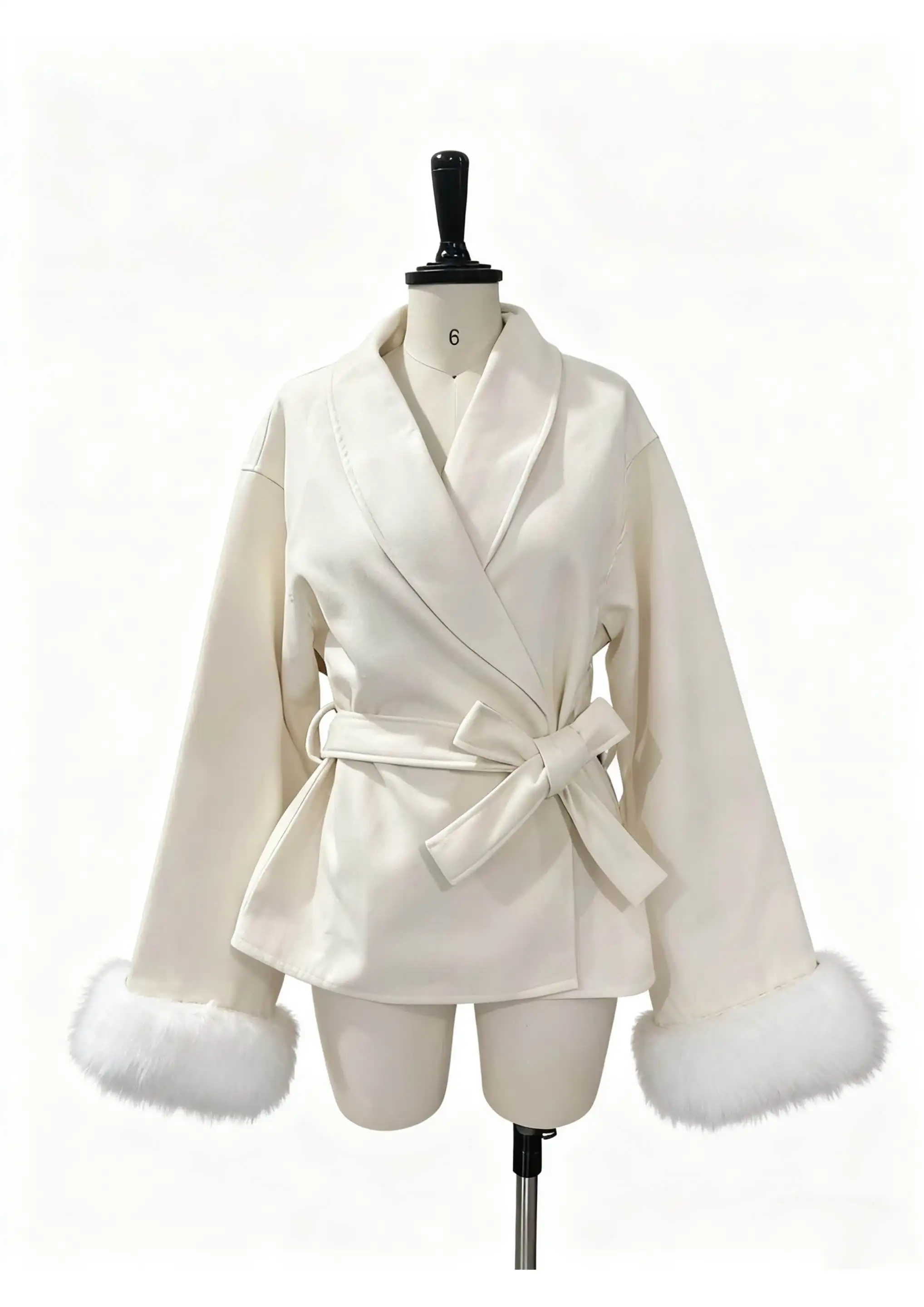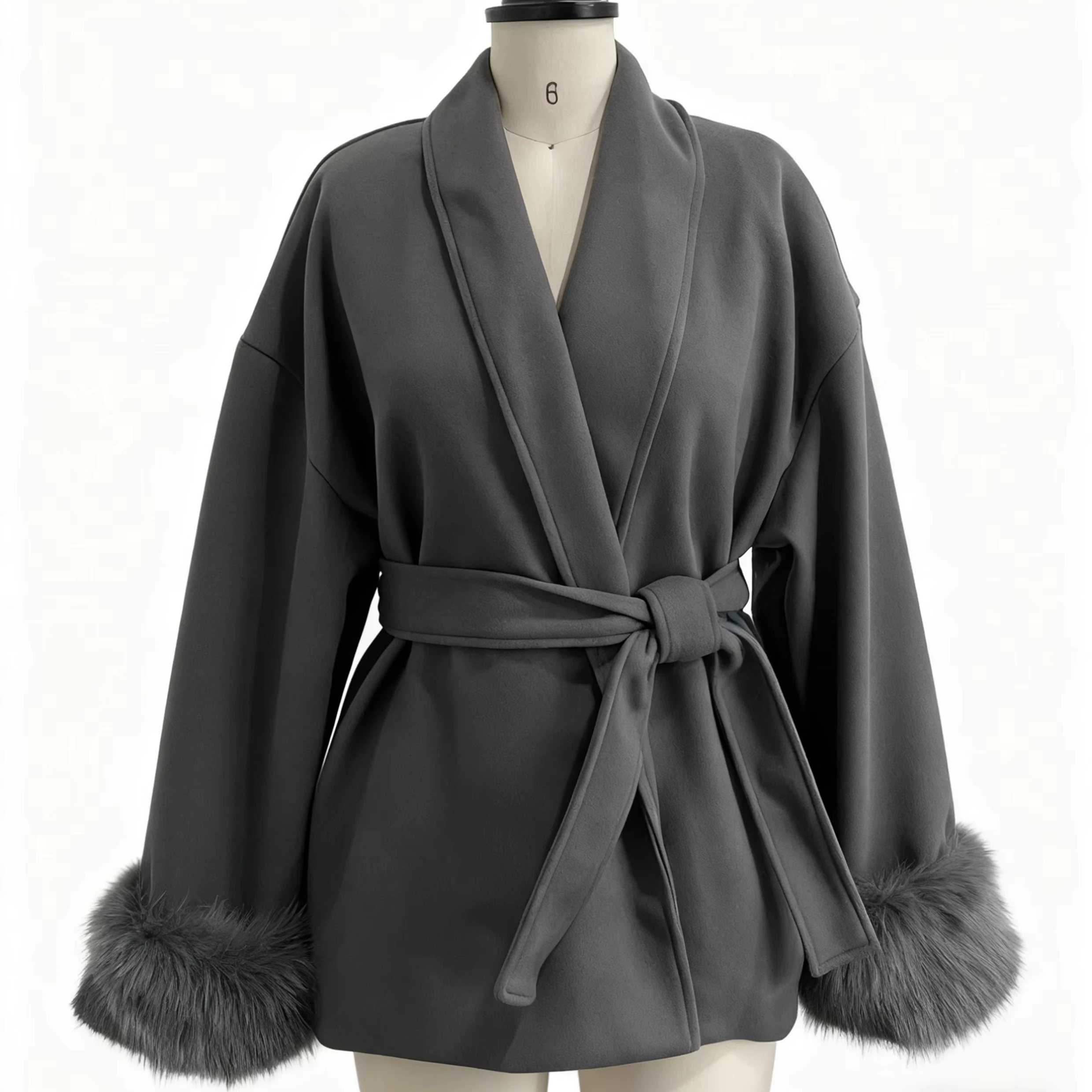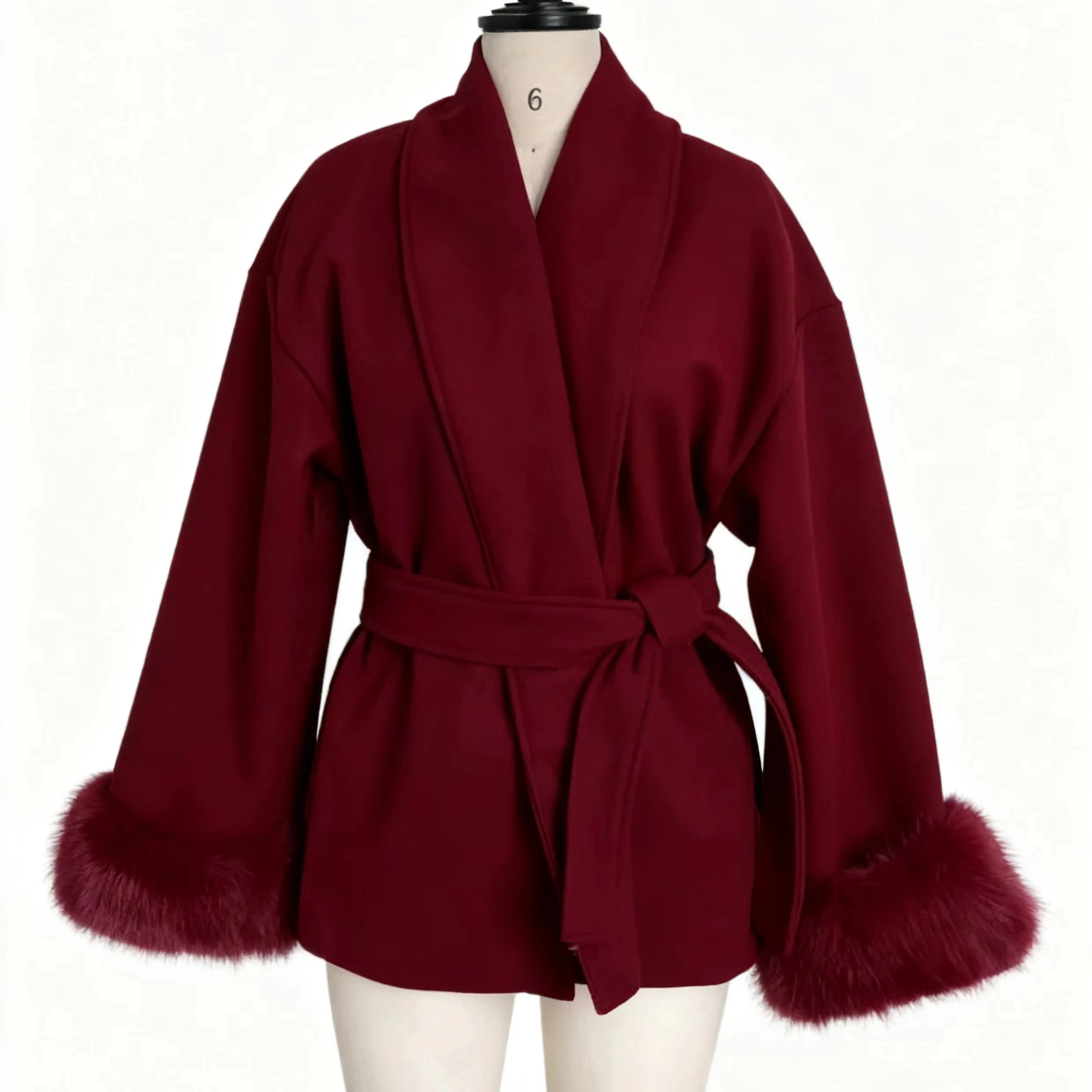 Luxury Elegant Medium Length Ladies Coat Soft Belt Fluffy Fox Fur Cuffs Autumn Winter Commute Solid Color Woman Coat