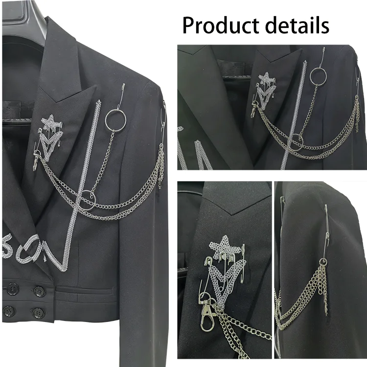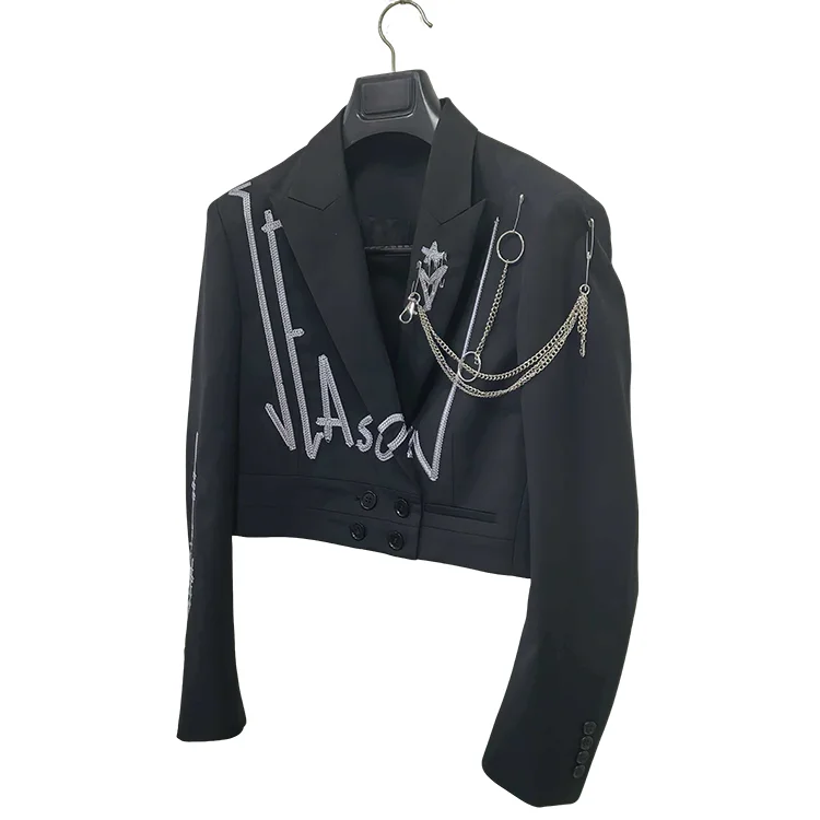 YDC Autumn Fashion Black Suit Double-Breasted Casual Jacket for WomenRegular Sleeve Women's Jackets