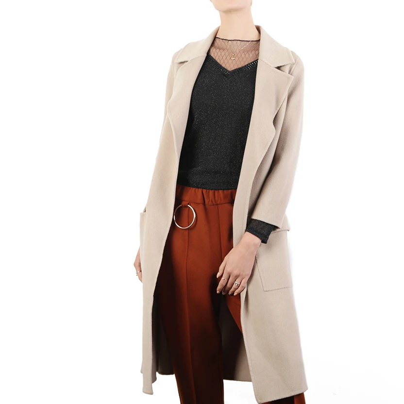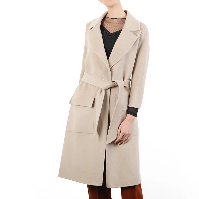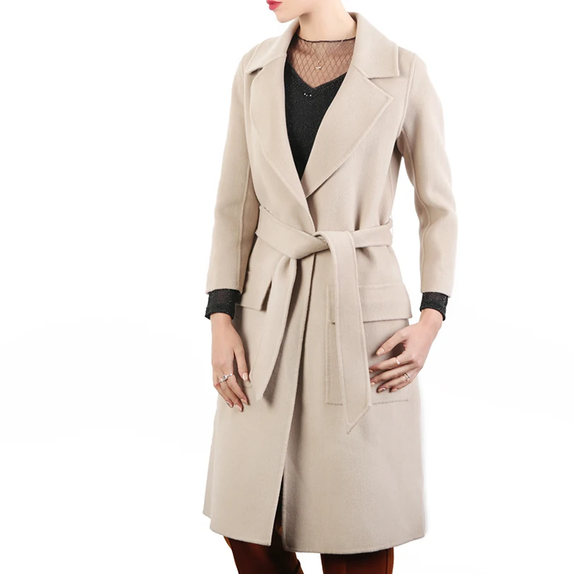 Wholesale Customized Warm Wool Woman Coat Pockets Ladys Cashmere Coat Factory Offered