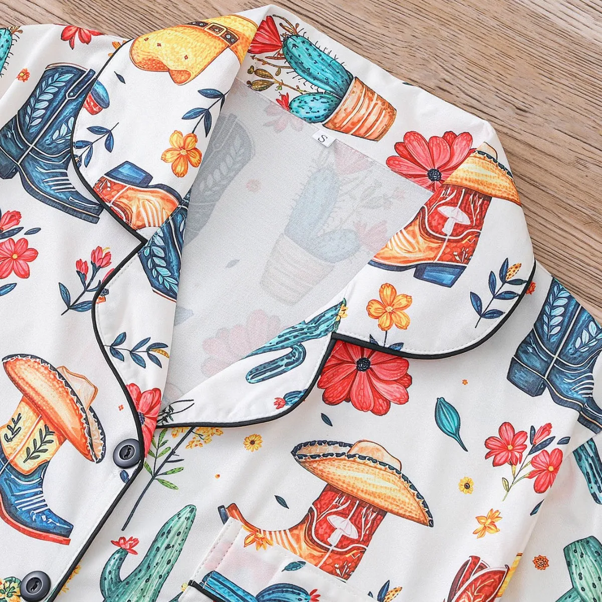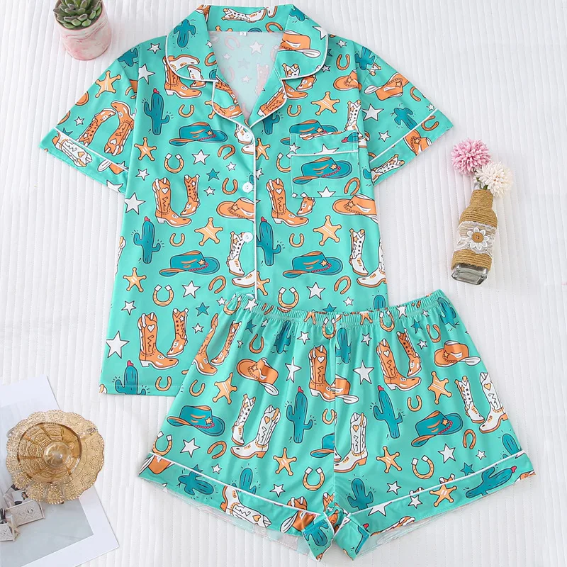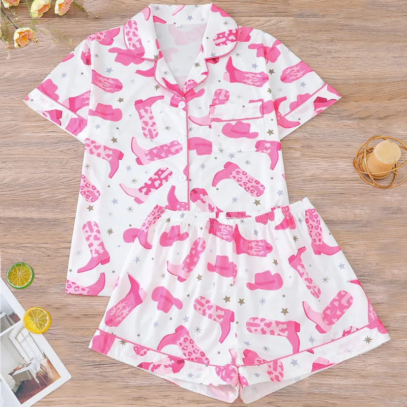 Women's Custom Logo Pajama Set Printed Short-Sleeved Sleepwear with Fleece Fabric Short Shorts