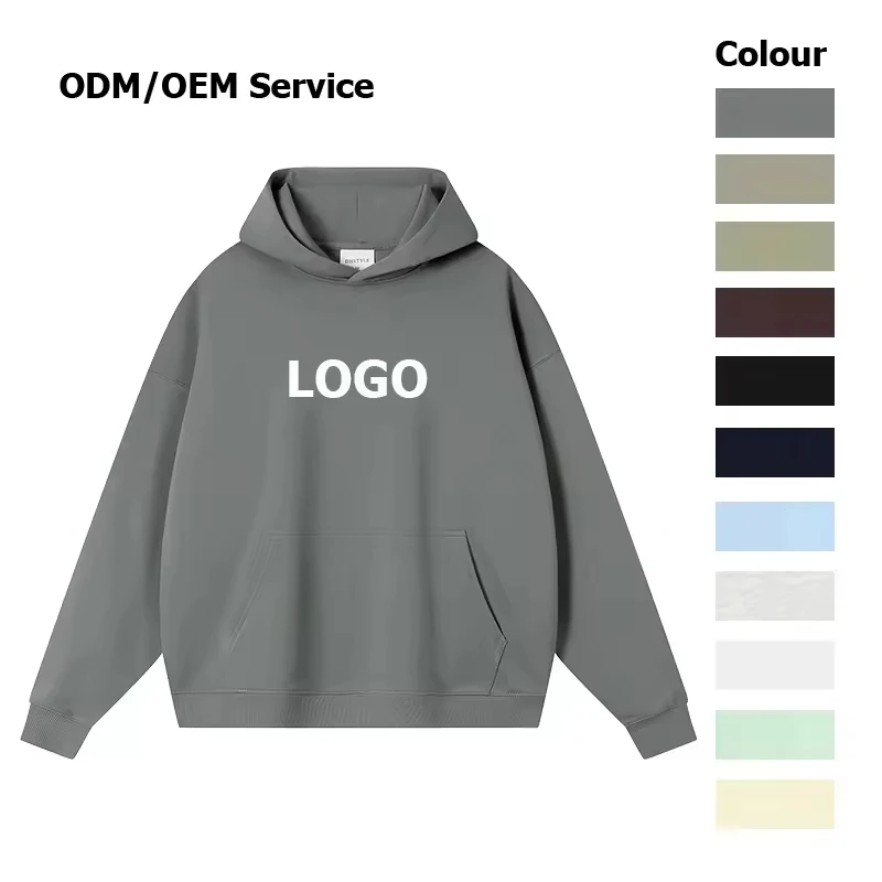 Custom LOGO 400GSM Oversized Frency Terry Spring Casual 100% Cotton Men Knitted Top Solid Color Windproof Hoodies Sweatshirt