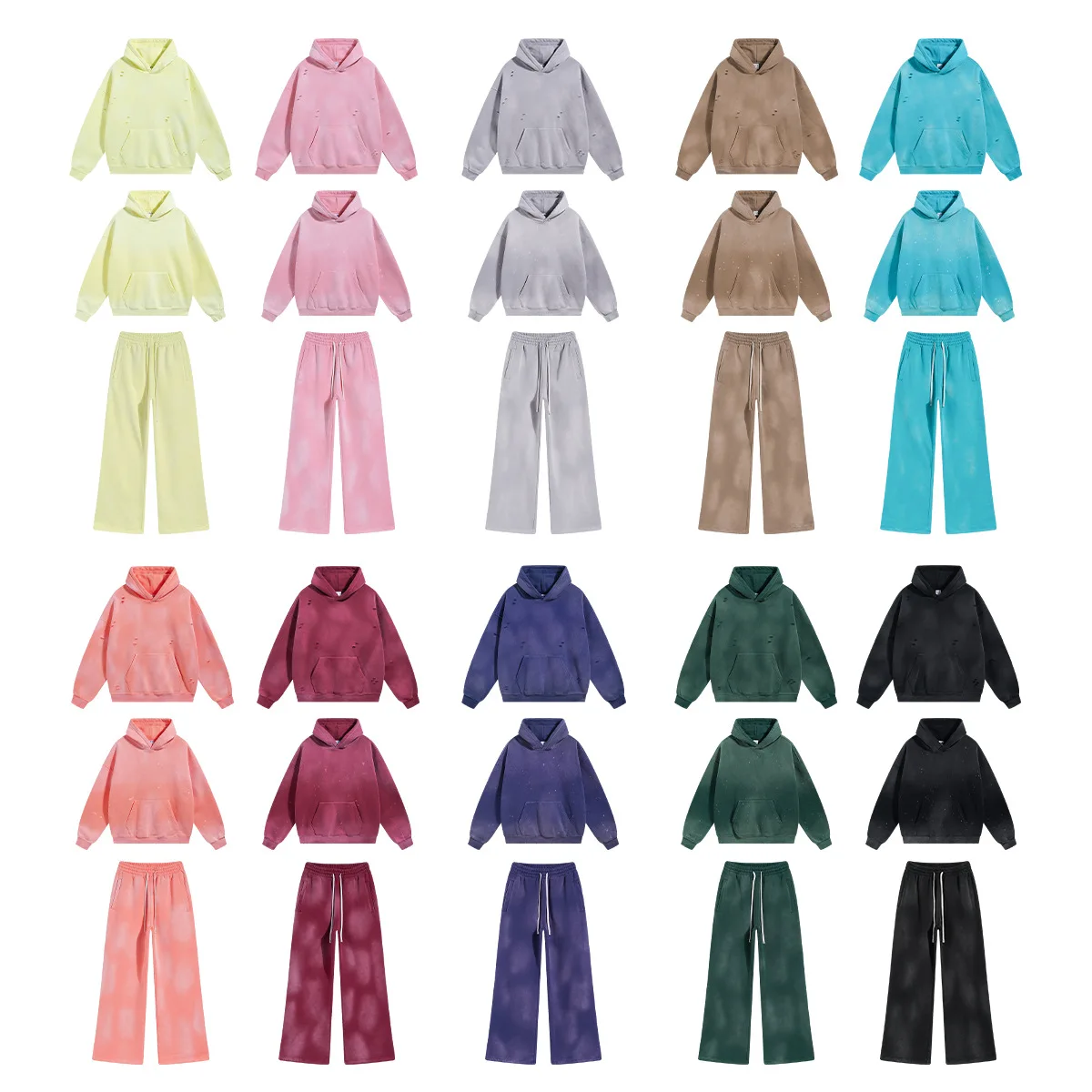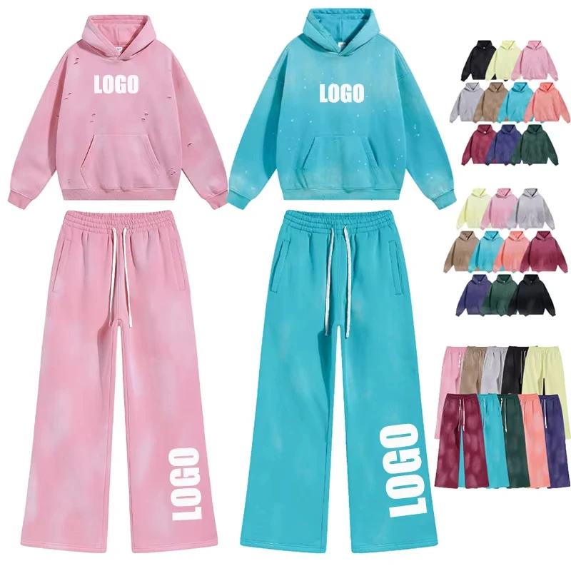 Custom LOGO Autumn Winter Men's Women's New White Spray Dyeing Washing Water 360G Velvet Cotton Polyester Sweatshirt Sweatpants