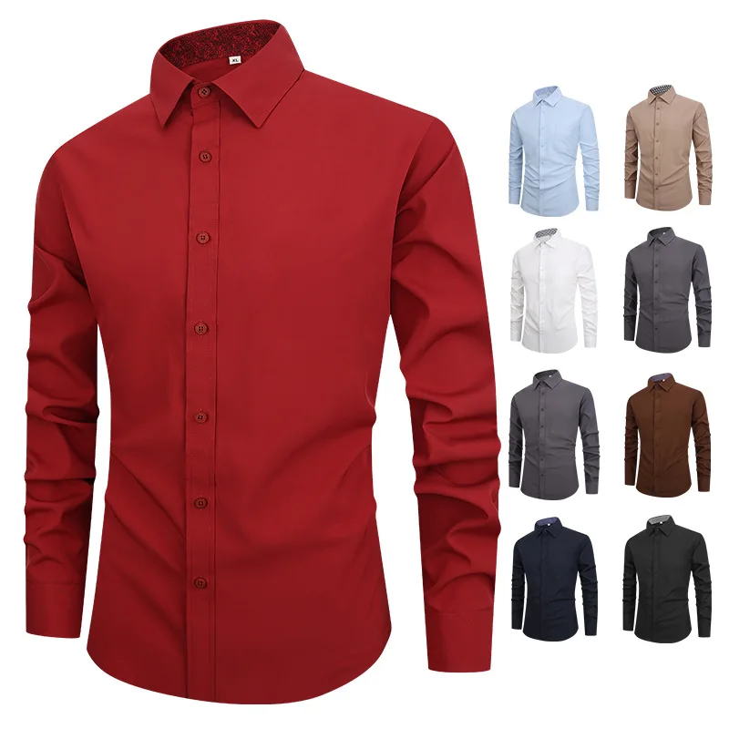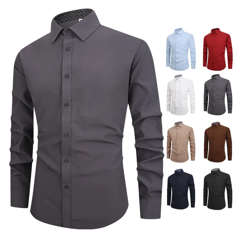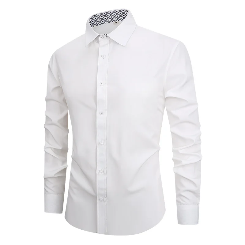 New Men's Casual Shirt Print Long Sleeve Stand Collar Wrinkle-free White Slim Eco-Friendly Dress Shirt Wholesale