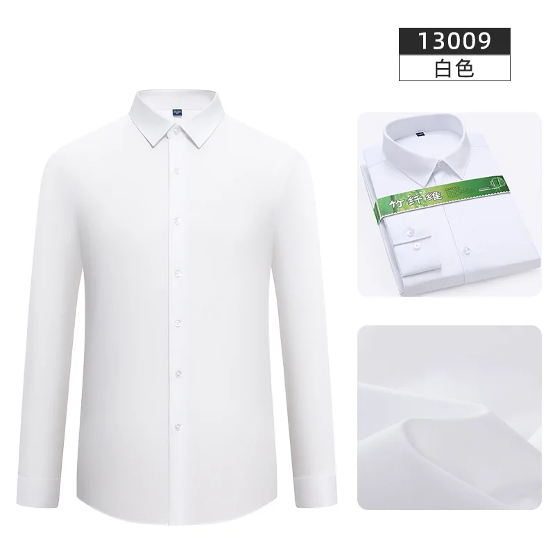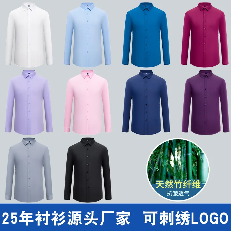 New Men's Long-sleeved Shirt Made of Bamboo Fiber Solid Color Stretchable Wrinkle-free Business Shirt