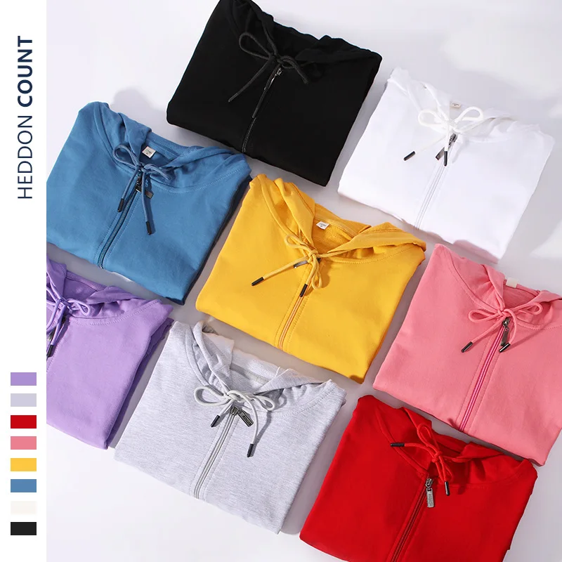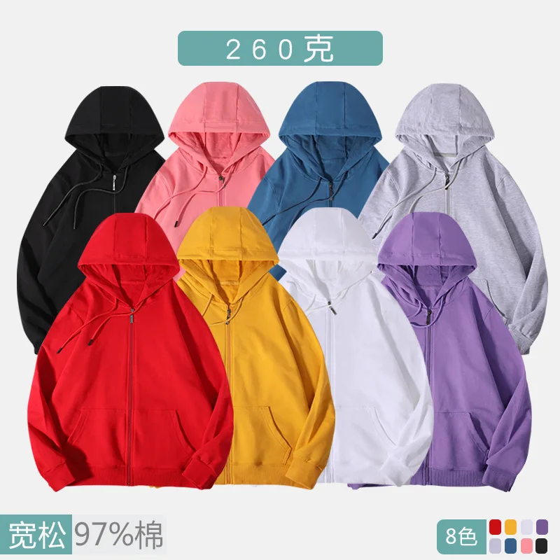 Custom Hoodies Zipper Cardigan Sweatshirt for Men and Women Long-sleeved Workwear Solid Color Hooded Terry Coat logo