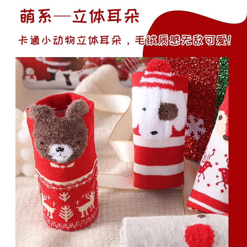 Custom New Pattern Sock Cartoon 3D Holiday Claus Mid-calf Red Socks Warm Winter Socks