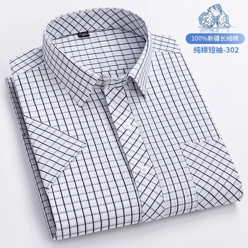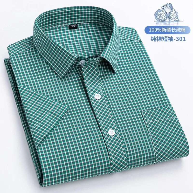Custom Men's New Summer Cotton Plaid Short-sleeved Shirt Thin Cardigan