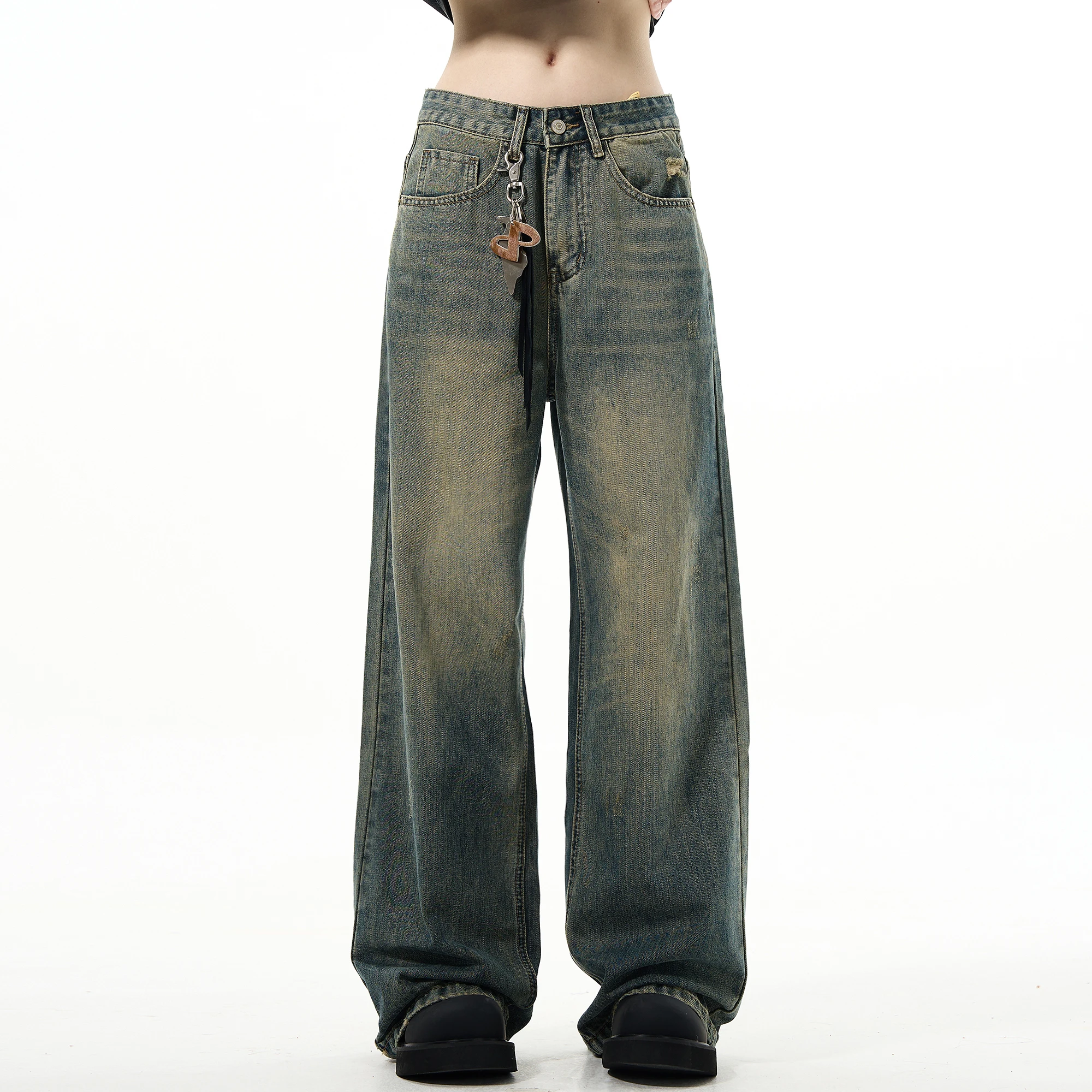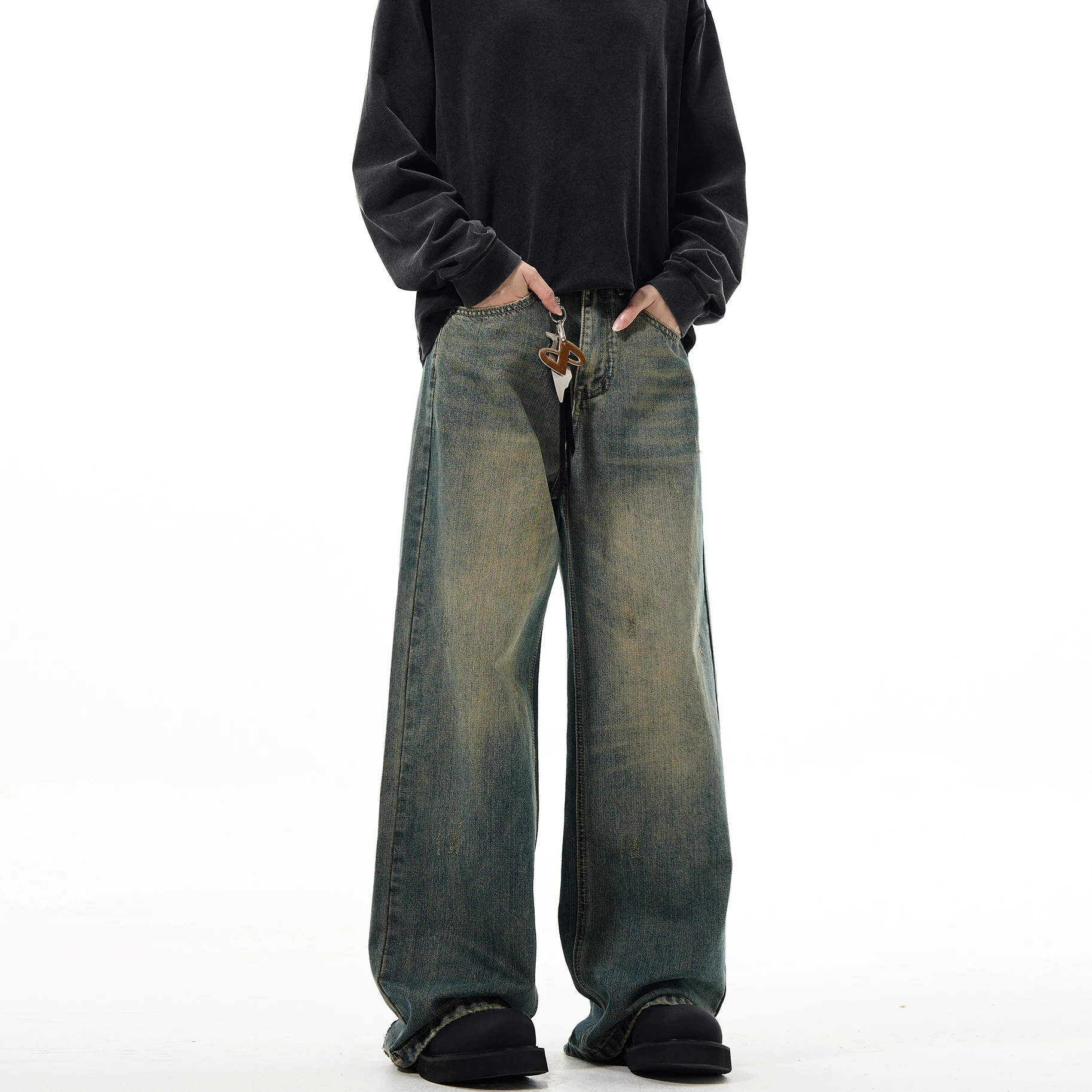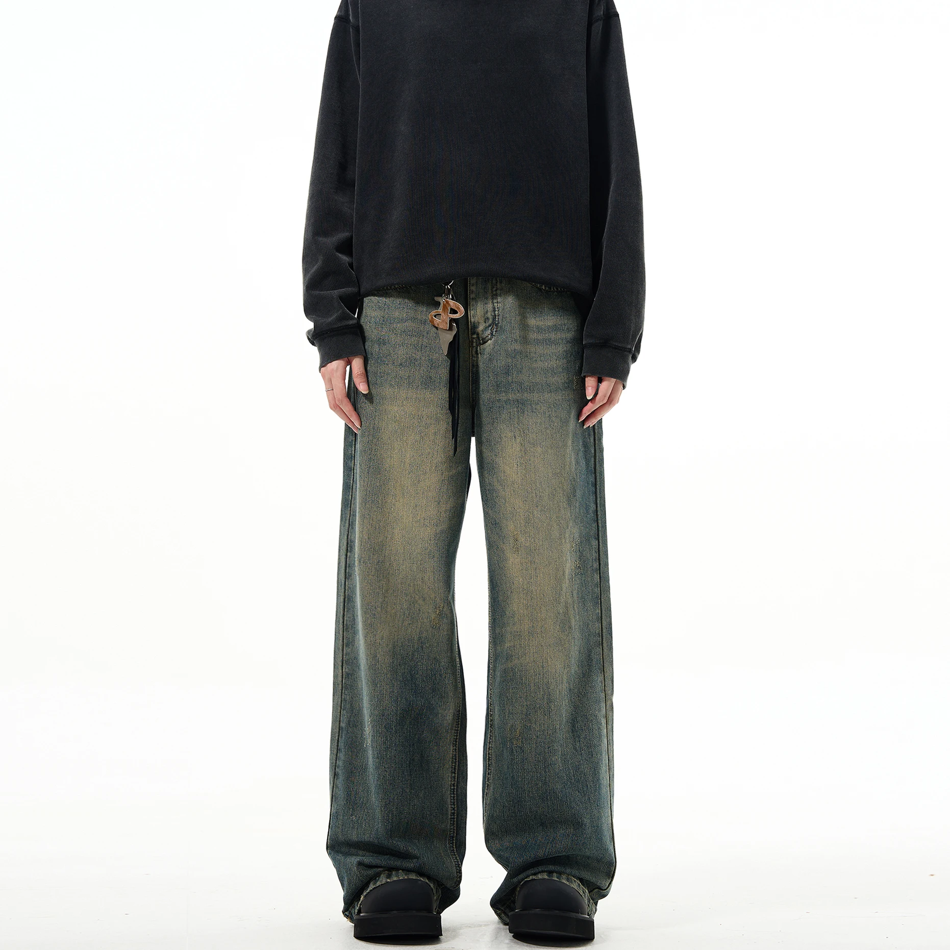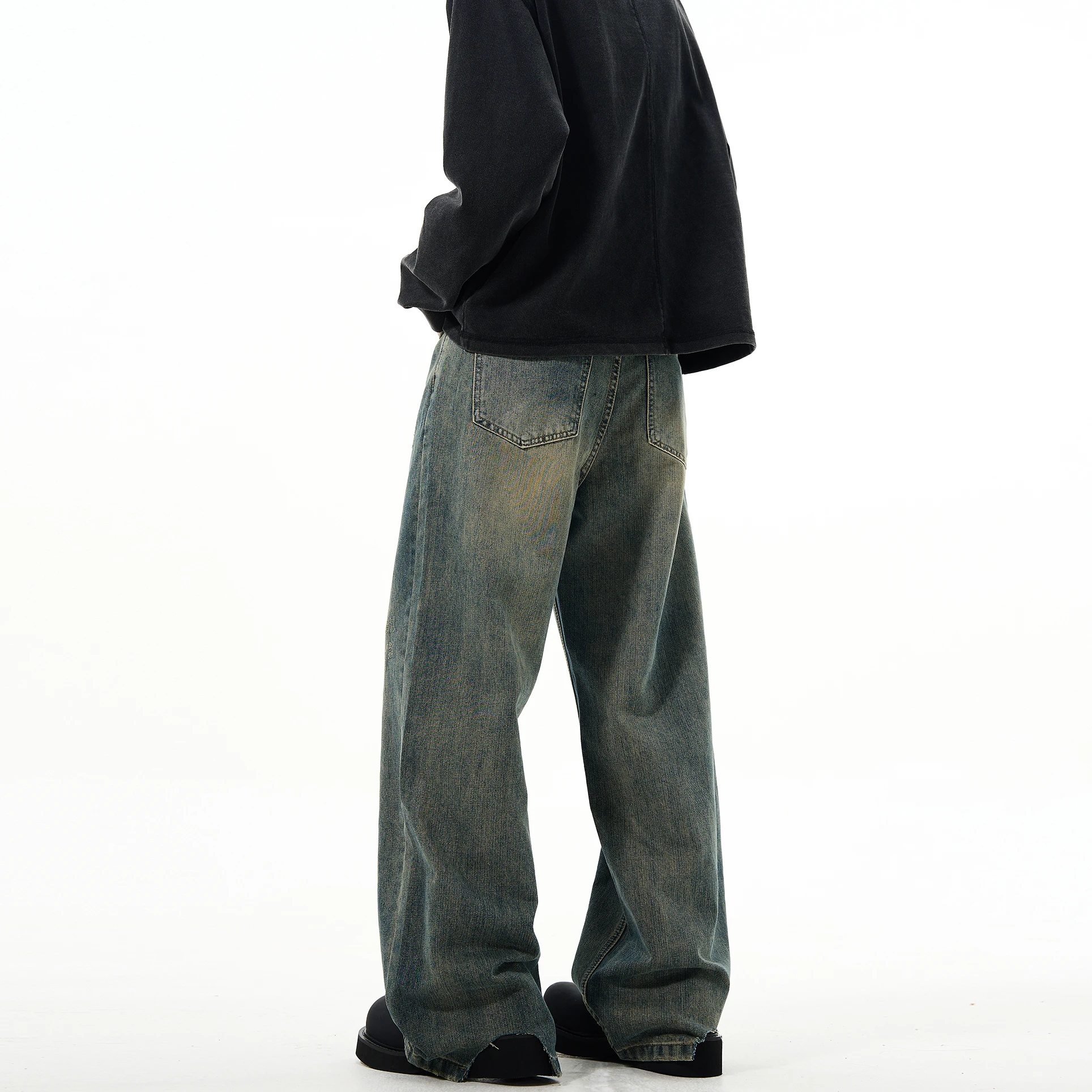 Custom Loose Fit Retro Style Cotton Jeans Streetwear Denim Stacked Mens Wide Leg Jeans Pants