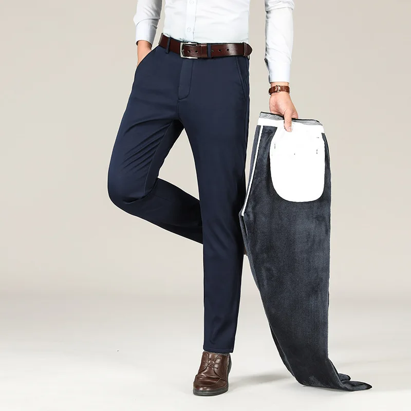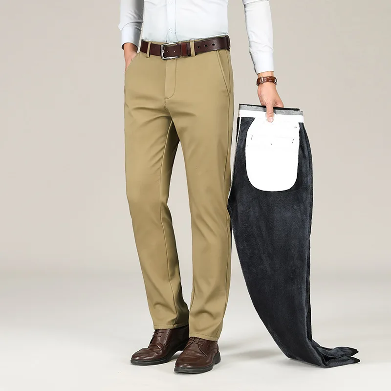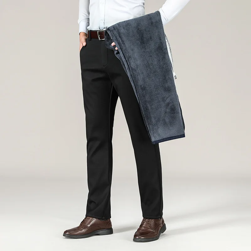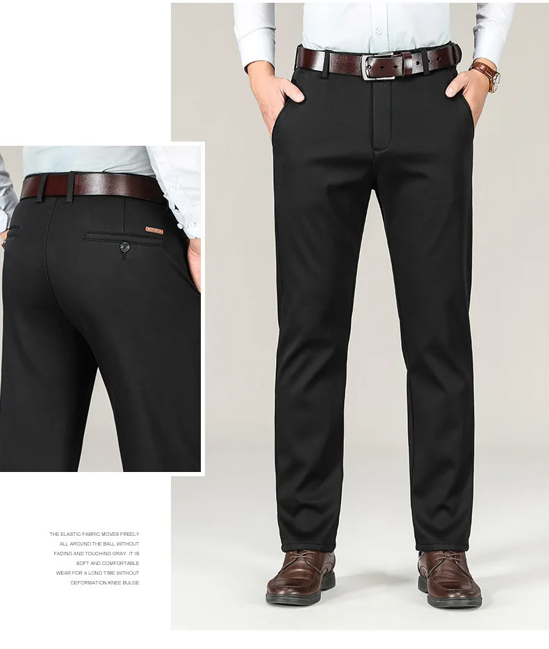 Autumn and Winter Thickened Elastic Trousers Mid-high Waist Business Straight Trousers Middle-aged Men's Trousers