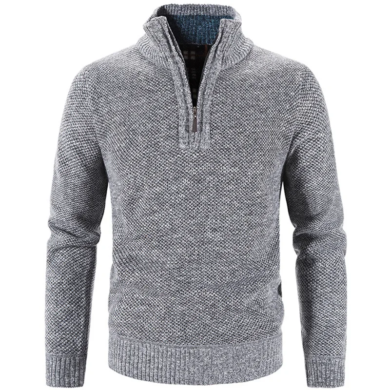 Vintage Style Loose Men's Cardigan for Autumn Winter Thickened Fleece-Lined Sweater with Stand Collar Jacket for Cold Weather