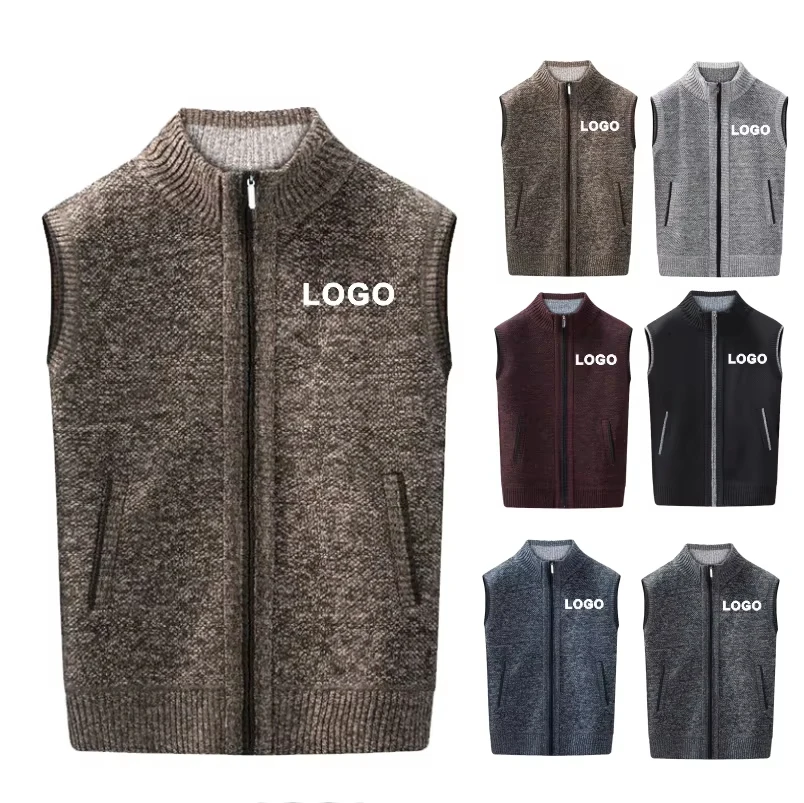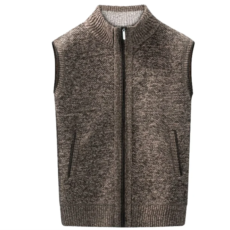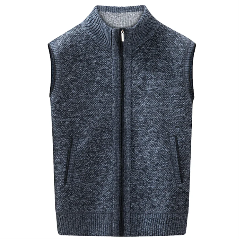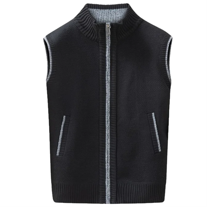 Knitted Cardigan Vest Autumn and Winter Vest Casual Sweater Cardigan Vest Stand Collar Men Solid Thickened Waistcoat Warm