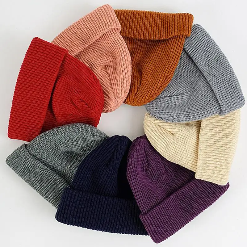 Custom Logo Men Winter Hats Knitted Thick Warm Beanies Cuff Knitted Fisherman Beanie Cap