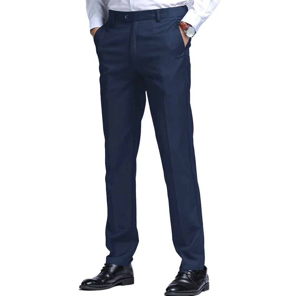High Men's Casual Suit Pants Customized Wholesale Comfortable Breathable Solid Color Straight Pattern Worsted Fabric Zipper Fly