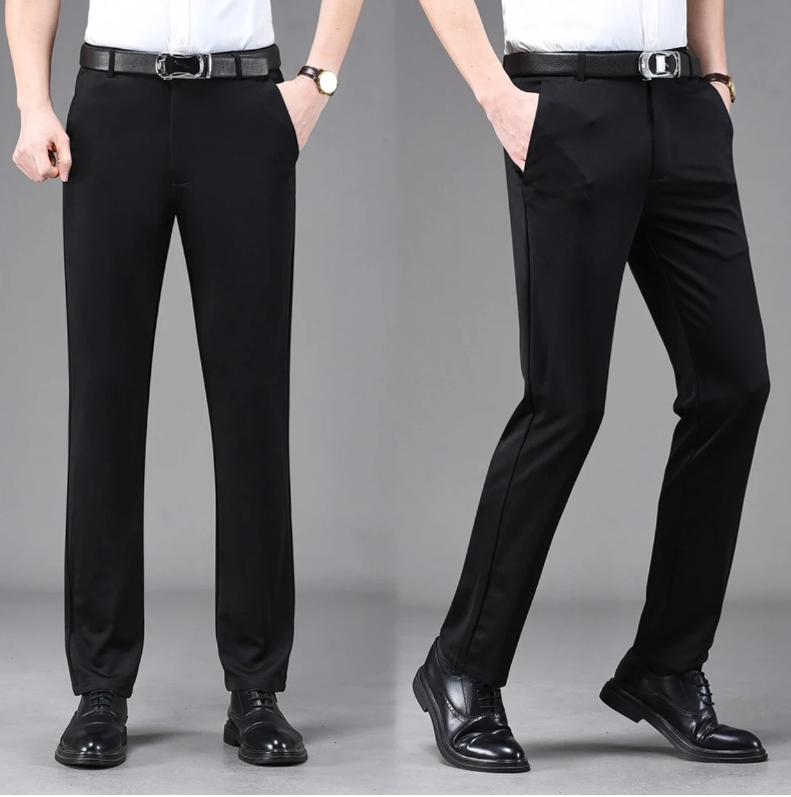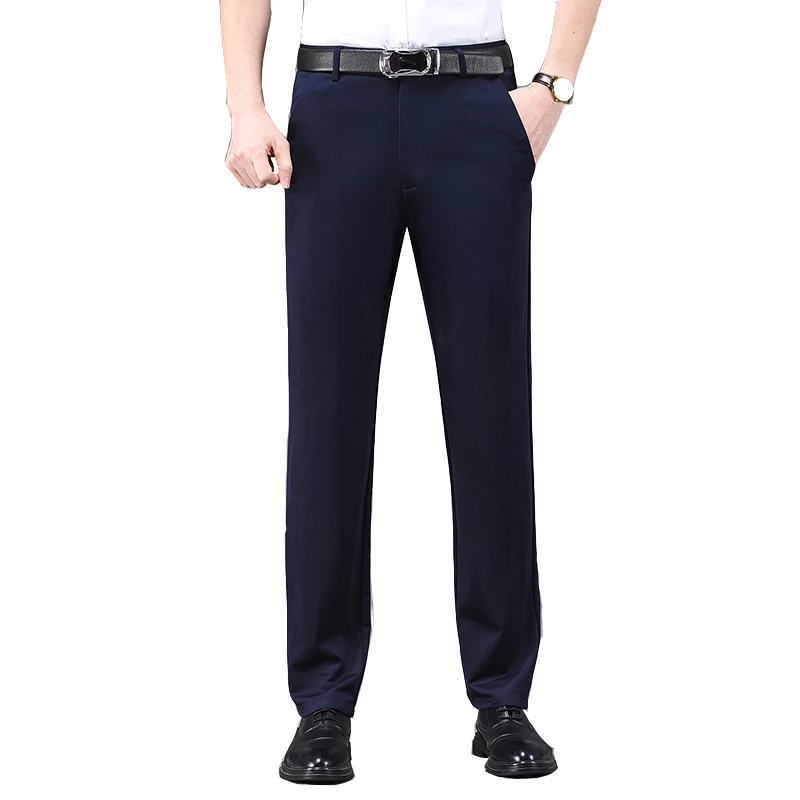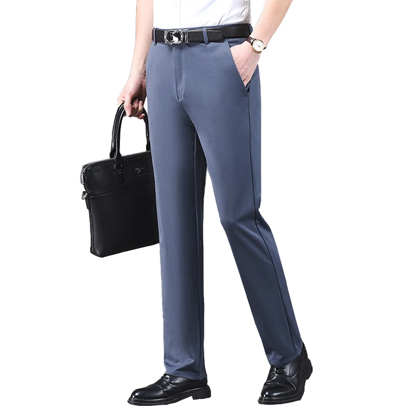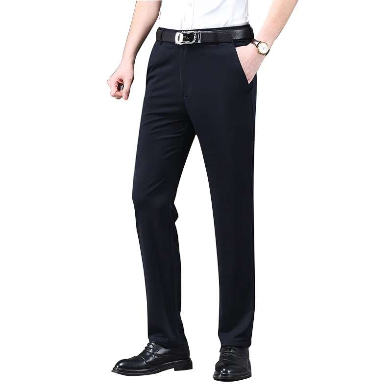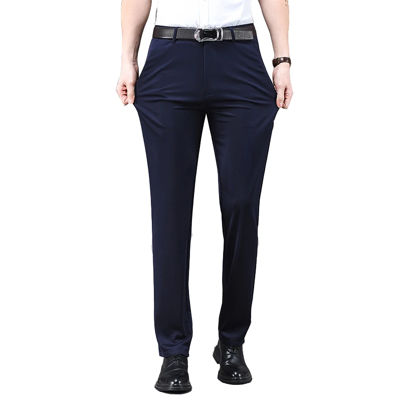 High Quality Men's Slim Fit Dress Pants Casual Comfort Formal Anti-Wrinkle Stretch Mid Waist Cotton Straight Pants