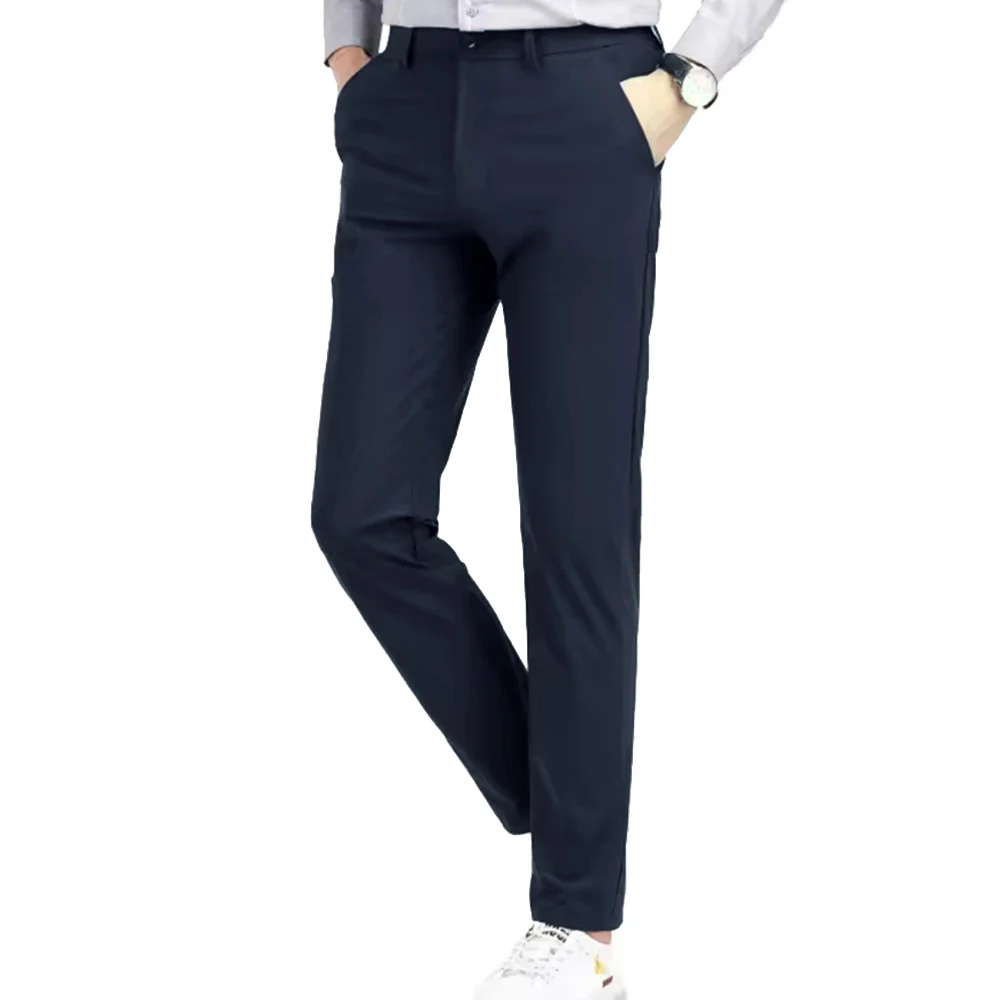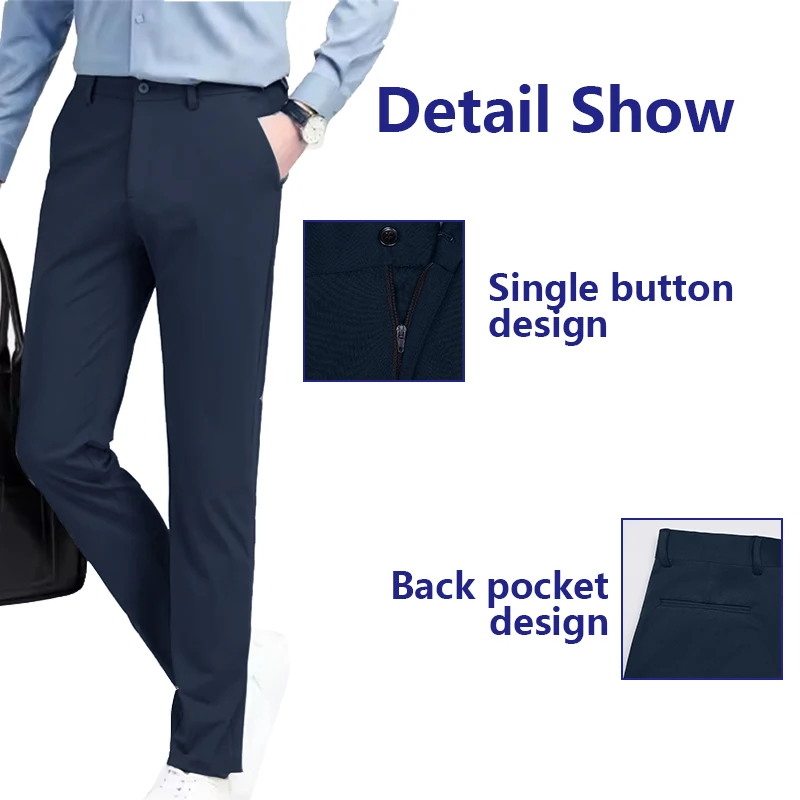 Men's Summer Slim Fit Straight Leg Formal Office Dress Pants Quick Drying Anti-Wrinkle Comfortable Elastic Worsted Men Pants