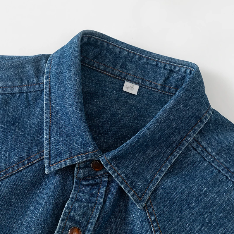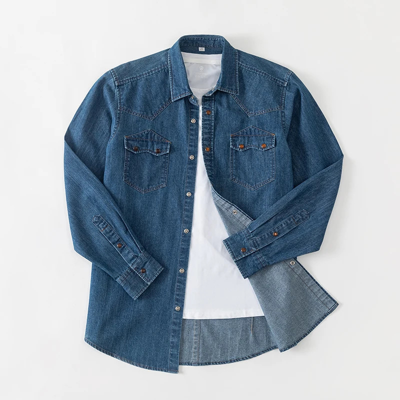 Custom Men's Autumn Solid Color Square Collar Button-Up Long Sleeve Dress Shirts Smart Casual Breathable Eco-Friendly Two-Pocket