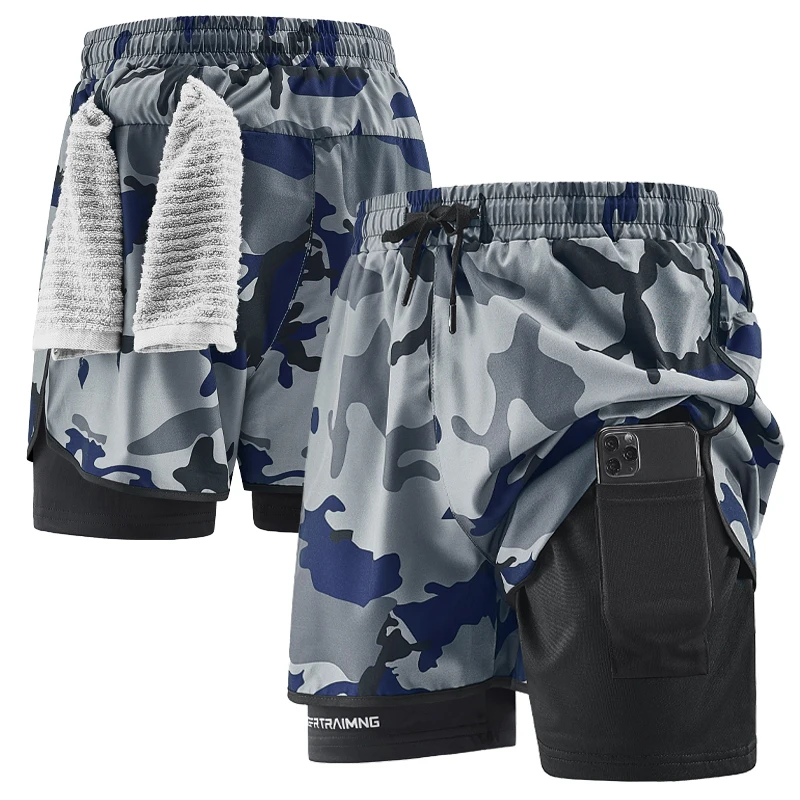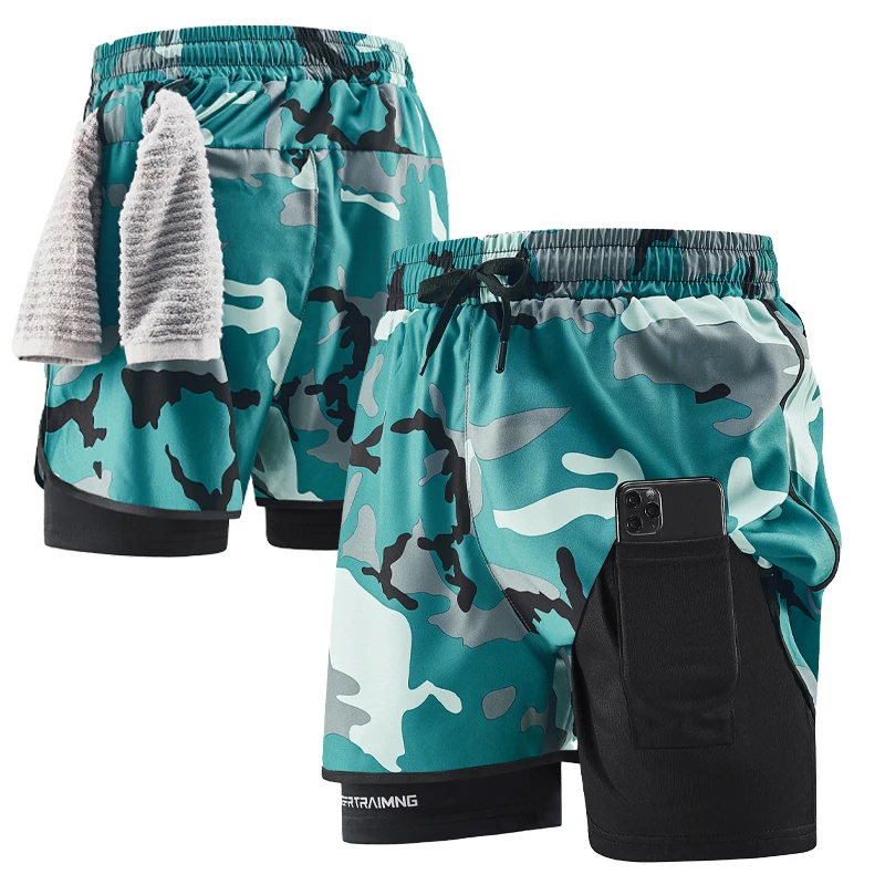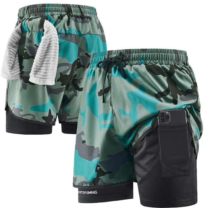 Men's Running Shorts Quick Drying Fitness Camouflage Double-layer Shorts Men's New Sports Training and Bodybuilding Shorts