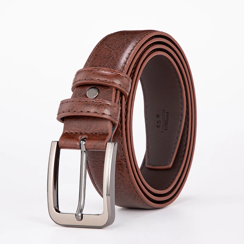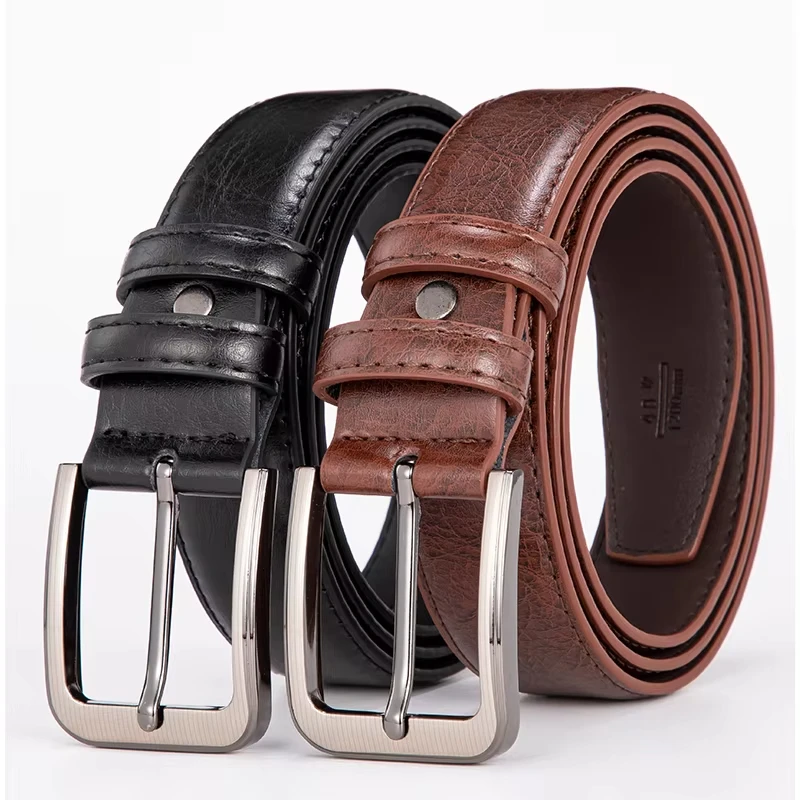 Men's Fashion Alloy Pin Buckle Head PU Leather Belt Versatile Casual Business Universal Suitable for Jeans and Trousers